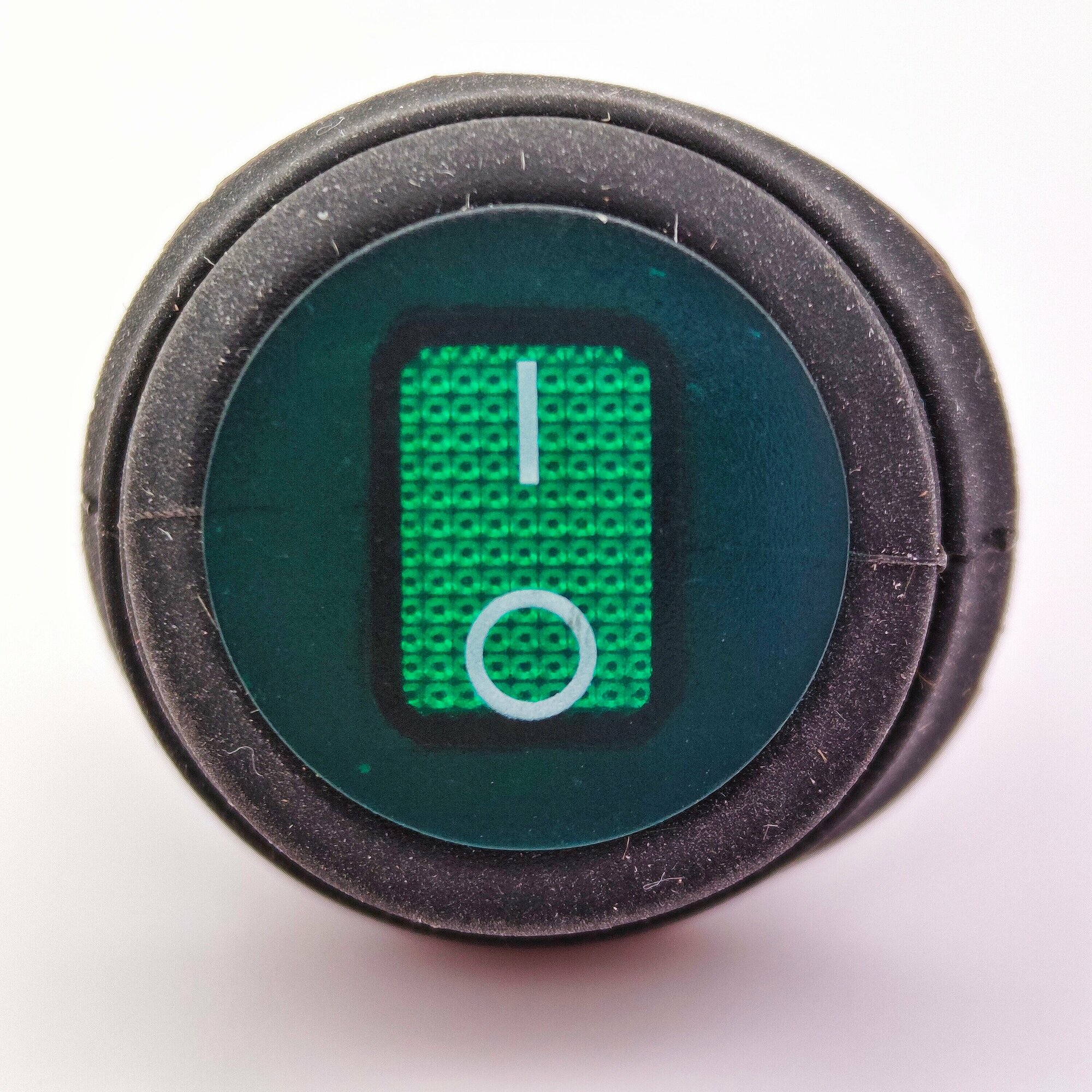СохранитьВыключатель клавишный круглый влагозащита подсветка 250V 6А (3с) ON-OFF зеленый (комплект с клеммами и термоусадкой) интересное: