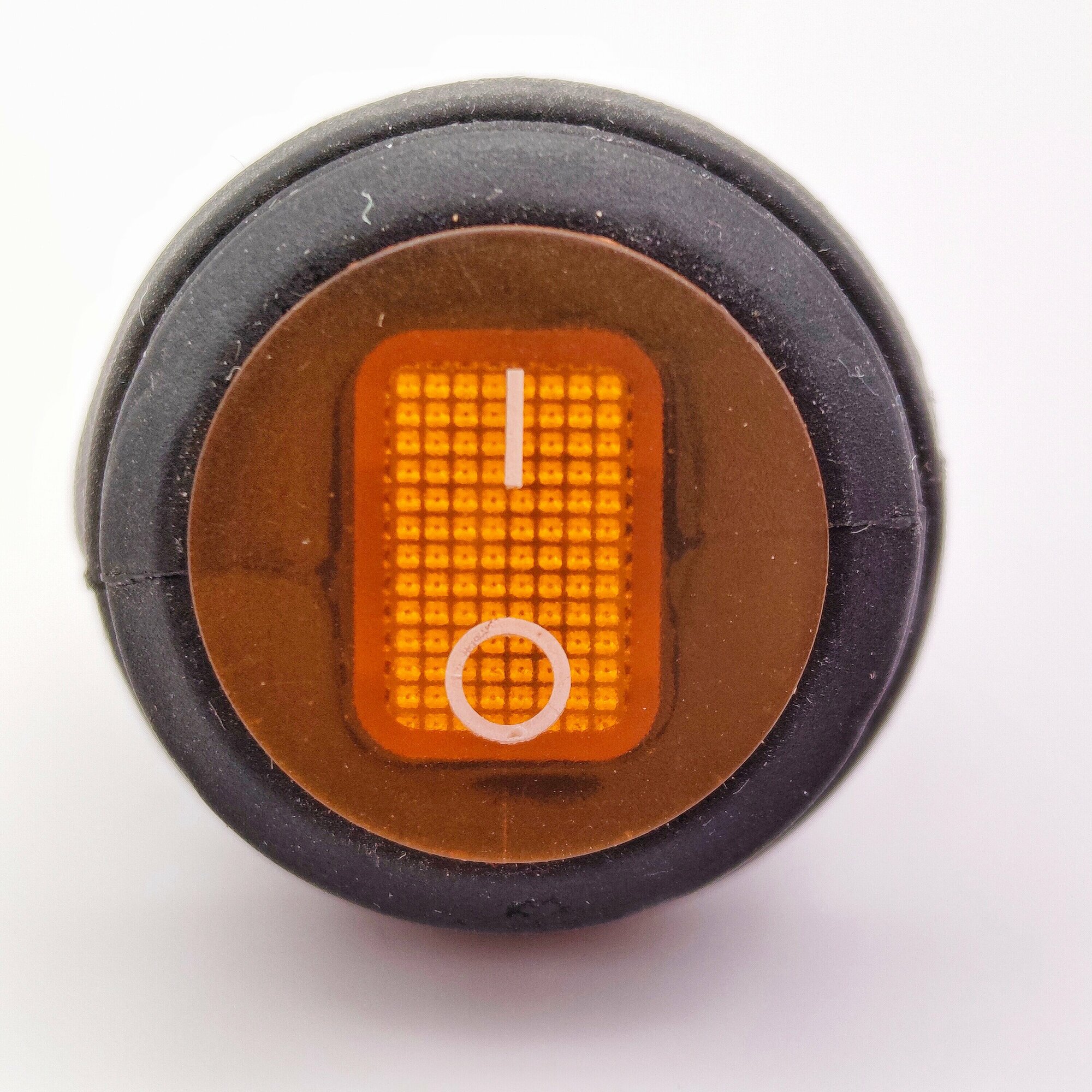 Купить Выключатель клавишный круглый влагозащита подсветка 250V 6А (3с) ON-OFF желтый (комплект с клеммами и термоусадкой)