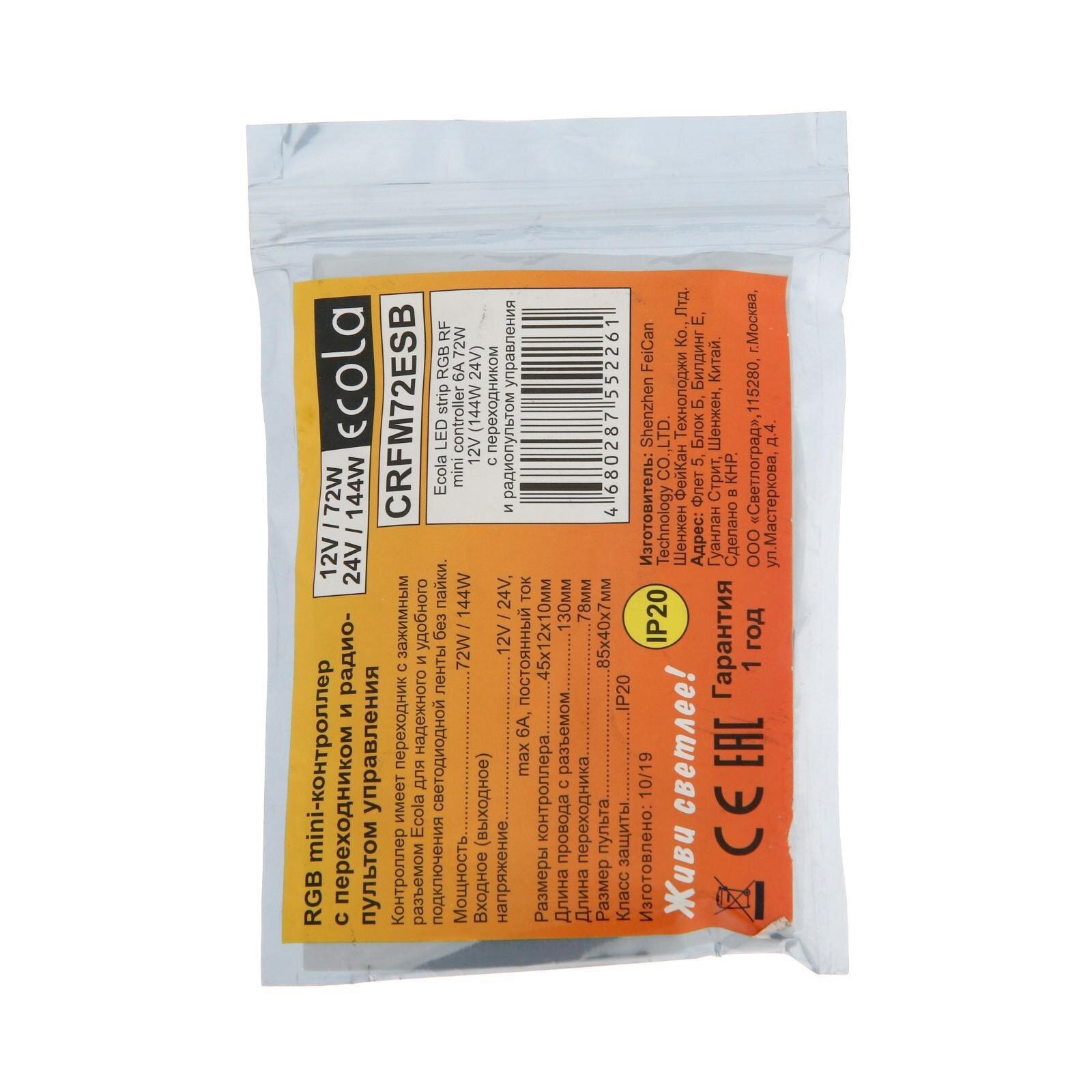 Купить Контроллер Ecola, для RGB ленты, 12 В, 72 Вт, 6 А, IP20, радиопульт 5799148