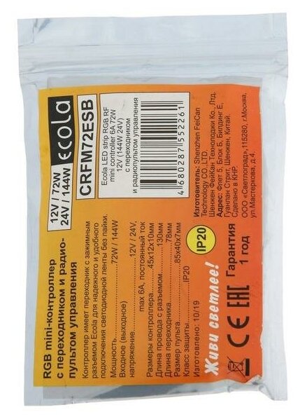 Ниже Вы можете прочитать отзывы на Контроллер Ecola, для RGB ленты, 12 В, 72 Вт, 6 А, IP20, радиопульт 5799148, ознакомится с подробными характеристиками, посмотреть интересные обзоры и фотографии на Контроллер Ecola, для RGB ленты, 12 В, 72 Вт, 6 А, IP20, радиопульт 5799148.
