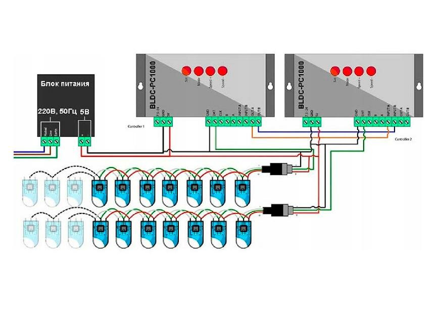 Контроллер для светодиодных пикселей (адресной SPI ленты) T1000S BEELED BLDC-PC1000 интересное: