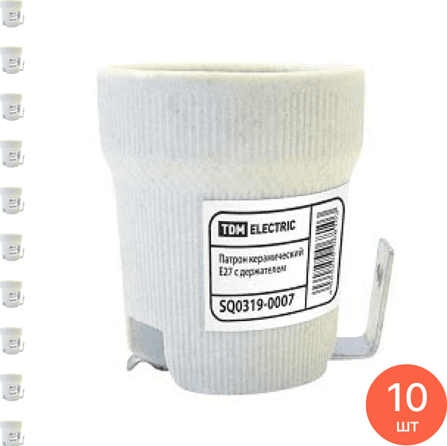 Патрон TDM Electric E27 керамический с держателем (комплект из 10 шт.)