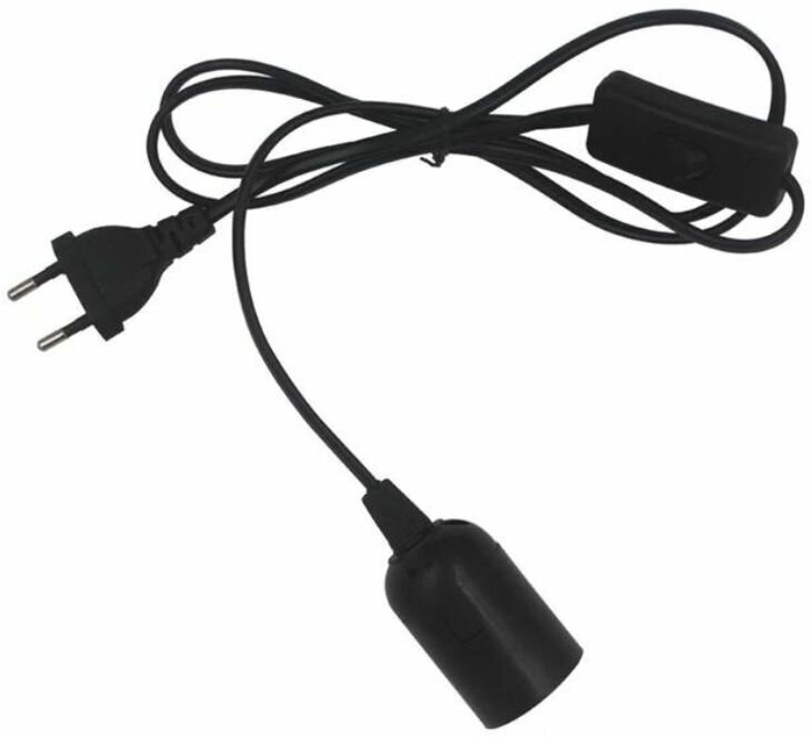 Патрон Е27 с проводом 2 м. вилкой и выключателем (черный). интересное:
