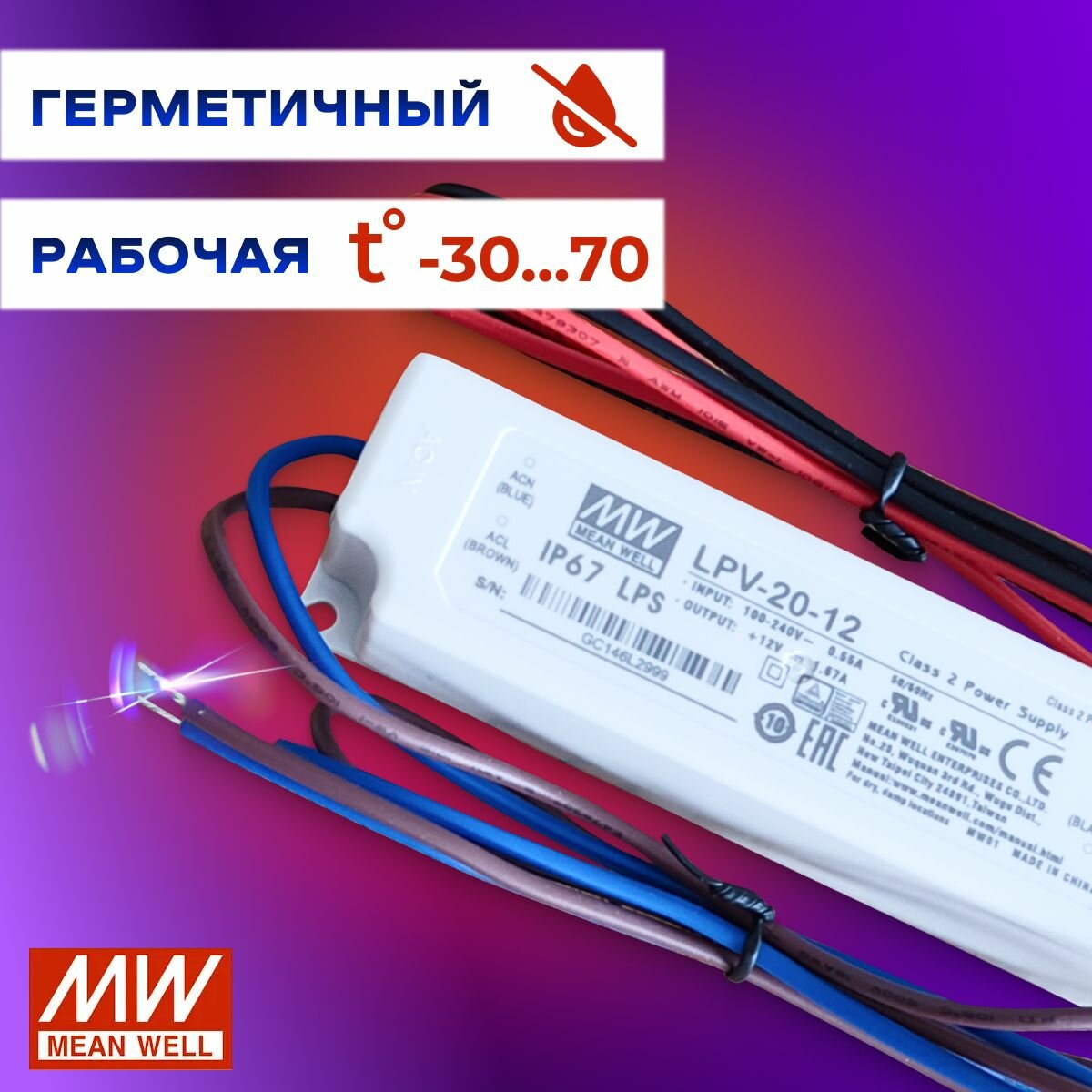 Блок питания для светодиодной ленты 12В, 20Вт, IP67 интересное: