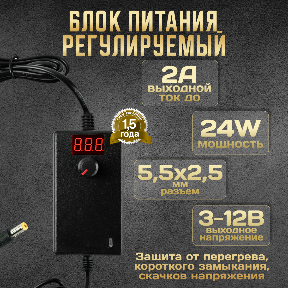 Сетевой блок питания диммируемый блок питания 3V-12V 2A (24W) с регулировкой напряжения