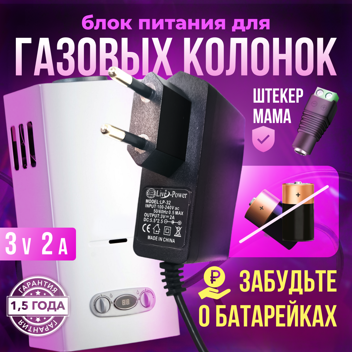 Купить Блок питания для газовой колонки 3V 2A с переходником в комплекте