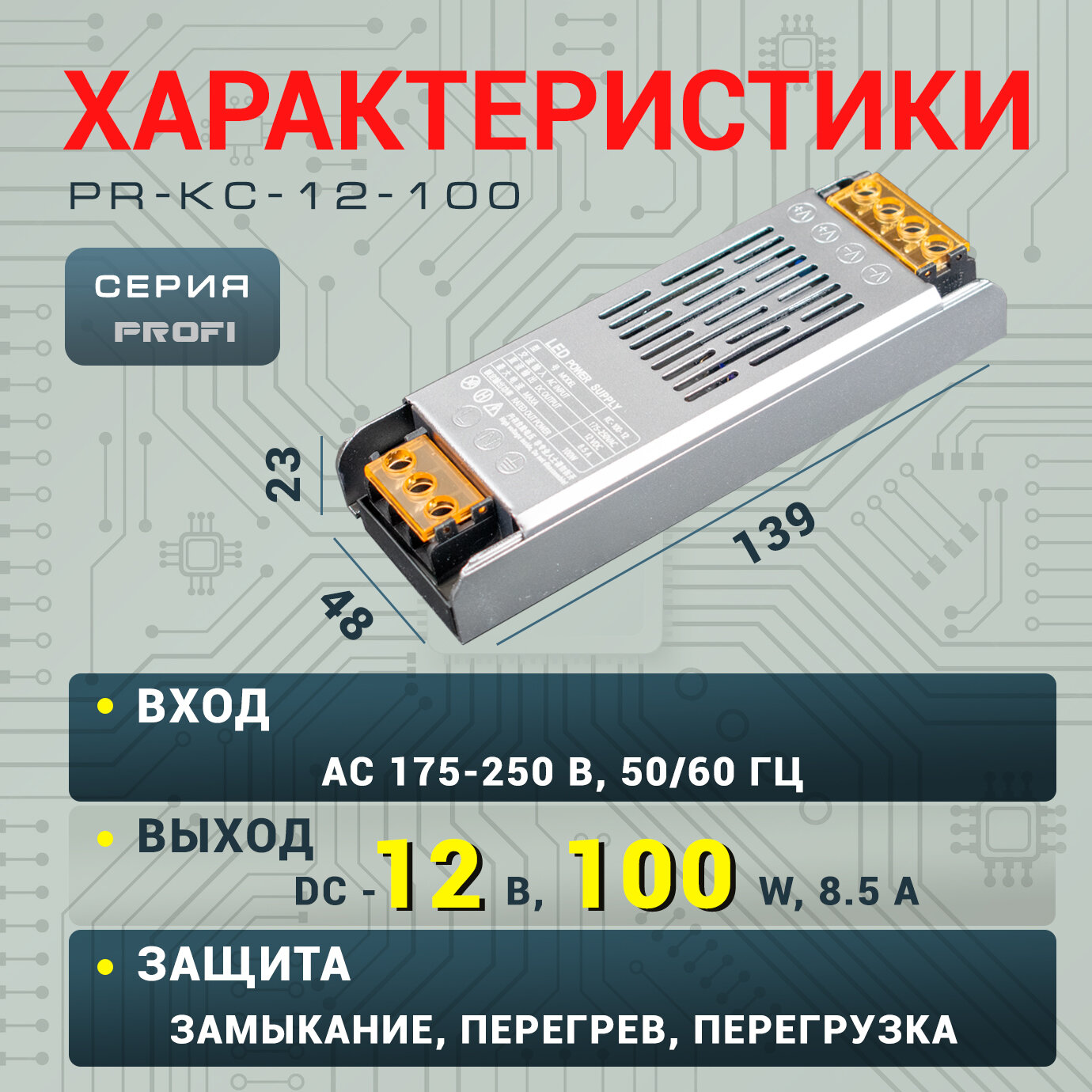 Универсальный блок питания для светодиодных лент 12В 150Вт, Profi LED-book