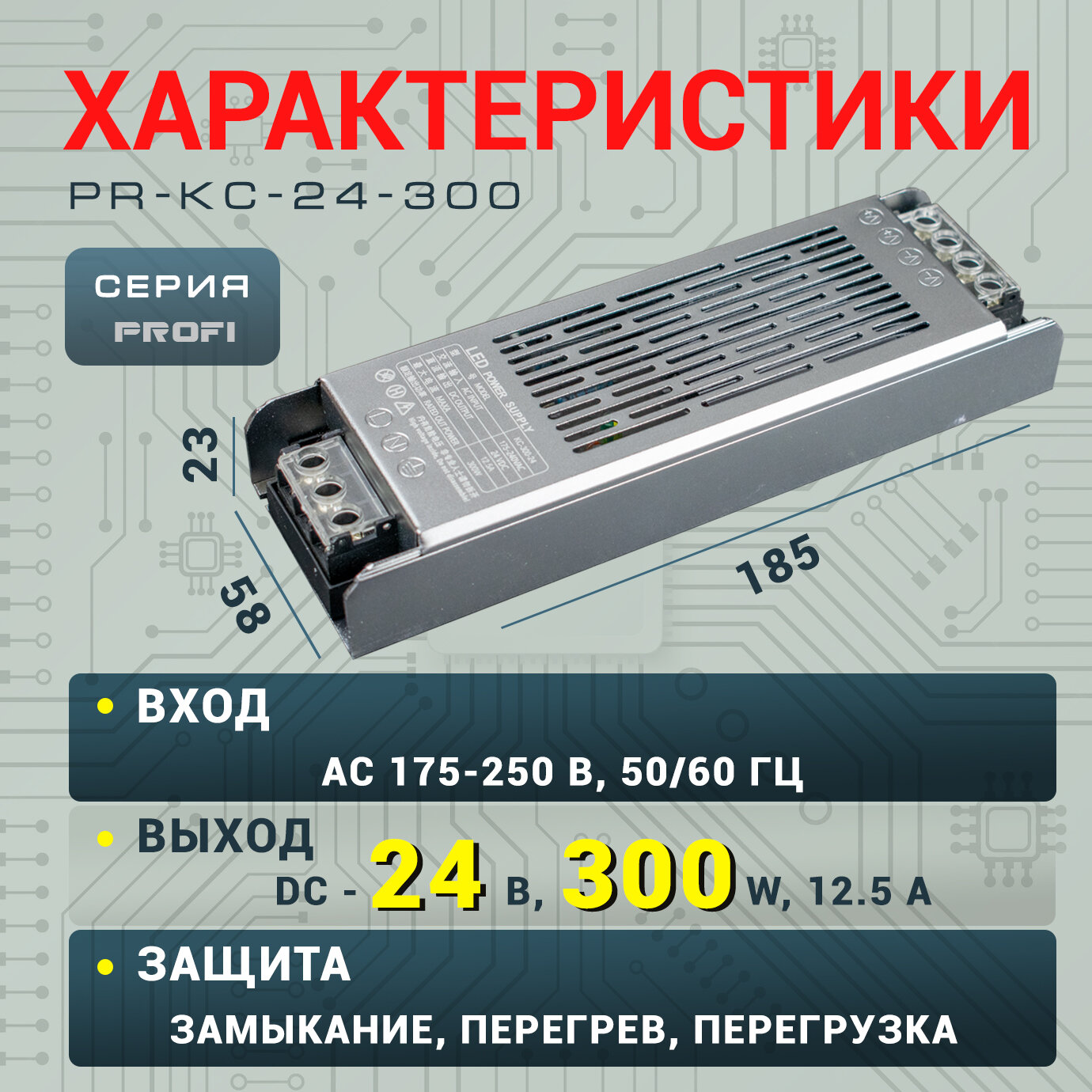 Блок питания Led-Book Profi 24V 300W узкий тонкий корпус металл