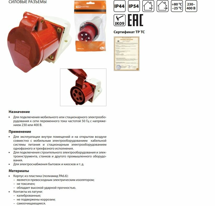 Розетка 225 переносная 3P+РЕ+N 32А 380В IP44 TDM {SQ0603-0014} интересное: