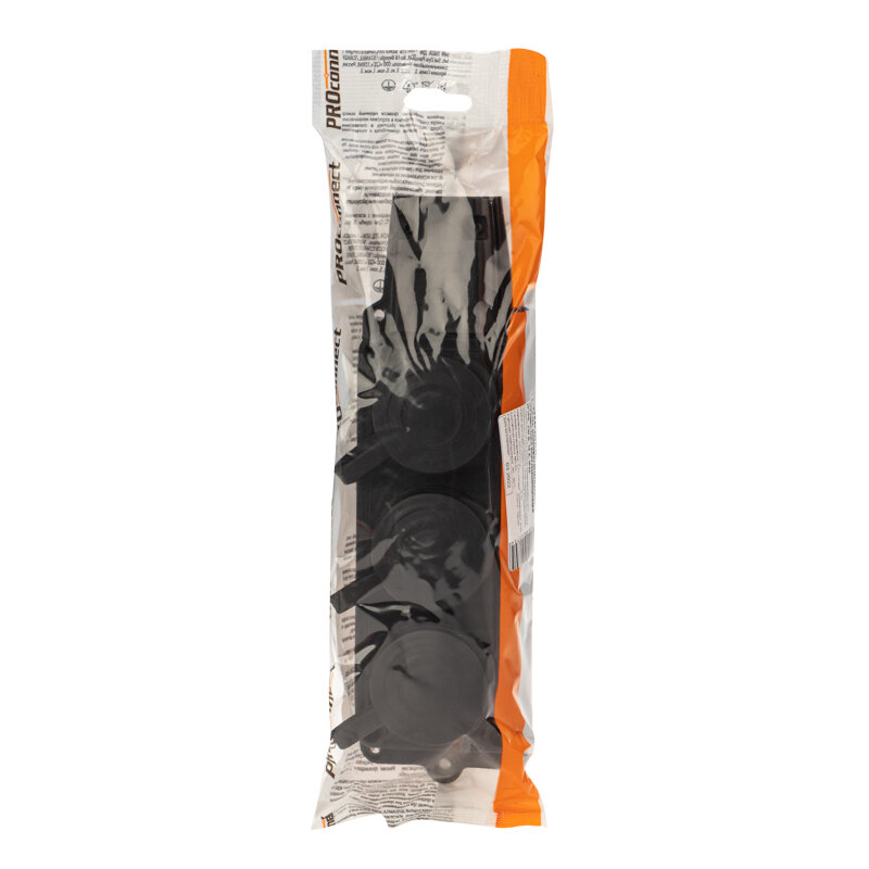 Розетка PROconnect 111-113-4 (колодка) штепсельная трехместная влагозащищенная 2P+PE 230V, 16 А, IP44 каучук