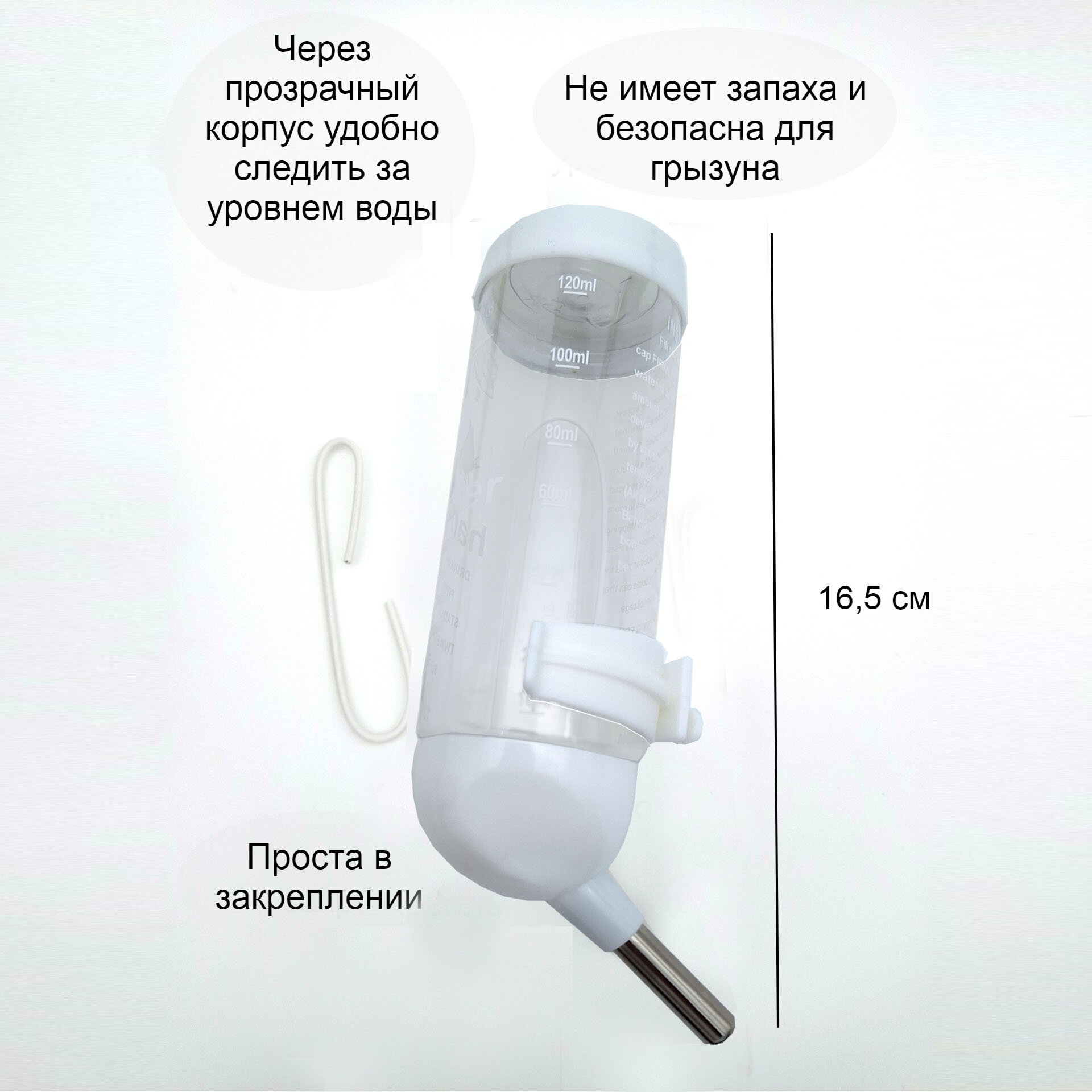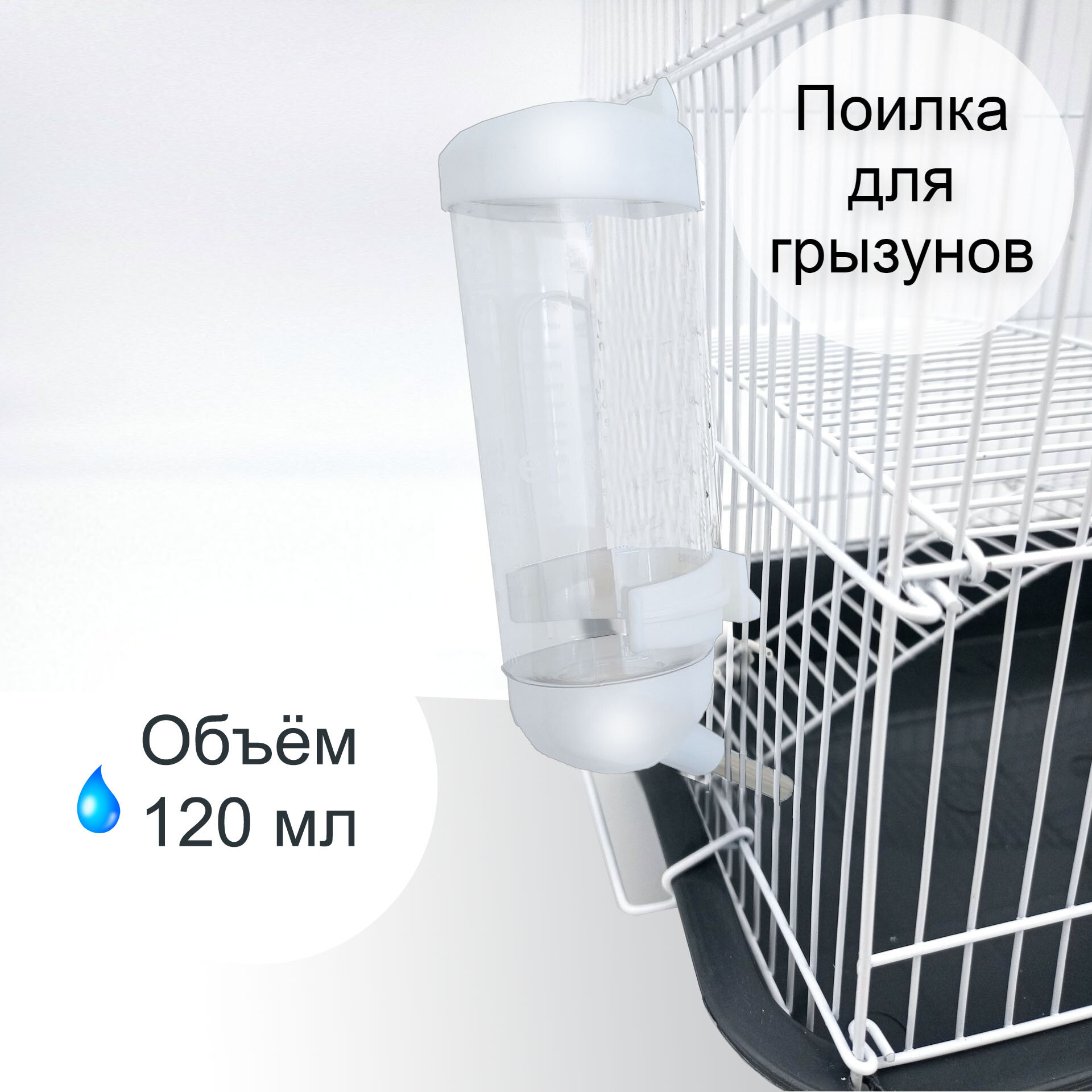 Поилка для грызунов, хомяка, крыс, джунгариков, сирийских хомячков 120 мл, в клетку прозрачная с шариком интересное: