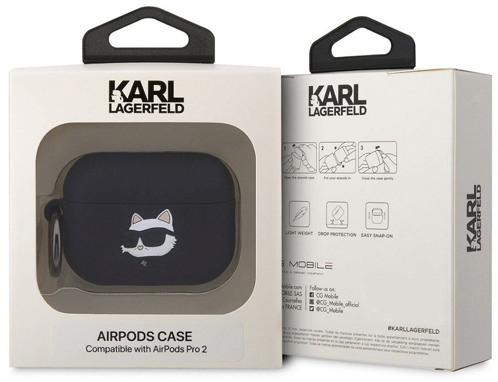 Чехол Karl Lagerfeld силиконовый для Airpods Pro 2, NFT 3D Choupette черный