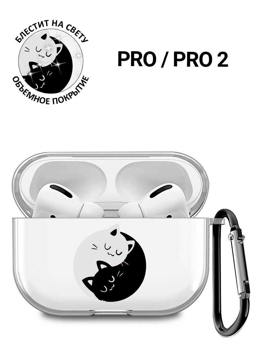 Купить Прозрачный чехол для наушников Apple AirPods Pro / АирПодс Про силиконовый с 3D принтом "Yin and Yang Cats"