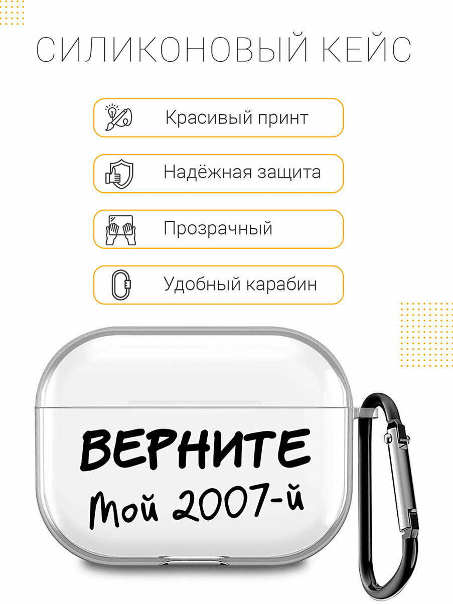 Купить Прозрачный чехол для наушников Apple AirPods Pro / АирПодс Про силиконовый с 3D принтом "2007"