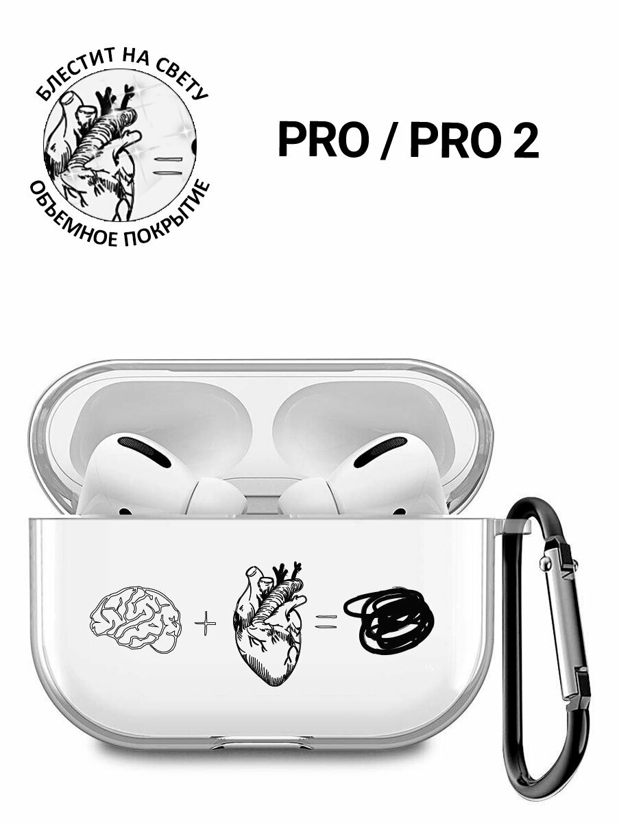 СохранитьПрозрачный чехол для наушников Apple AirPods Pro / АирПодс Про силиконовый с 3D принтом "Brain Plus Heart" интересное: