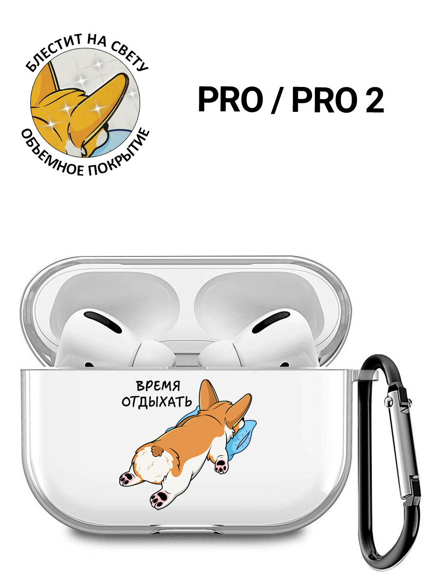 СохранитьПрозрачный чехол для наушников Apple AirPods Pro / АирПодс Про силиконовый с 3D принтом "Relax for corgi" интересное: