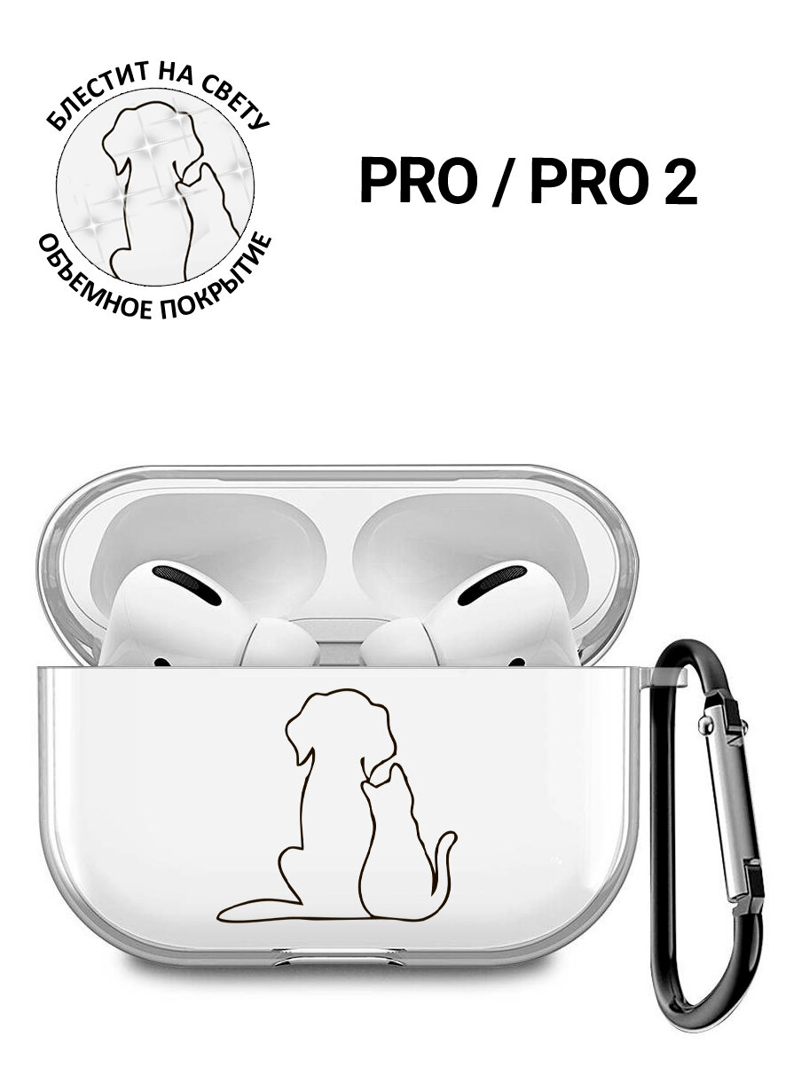 Купить Прозрачный чехол для наушников Apple AirPods Pro / АирПодс Про силиконовый с 3D принтом "Cat and Dog"