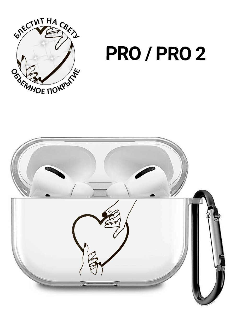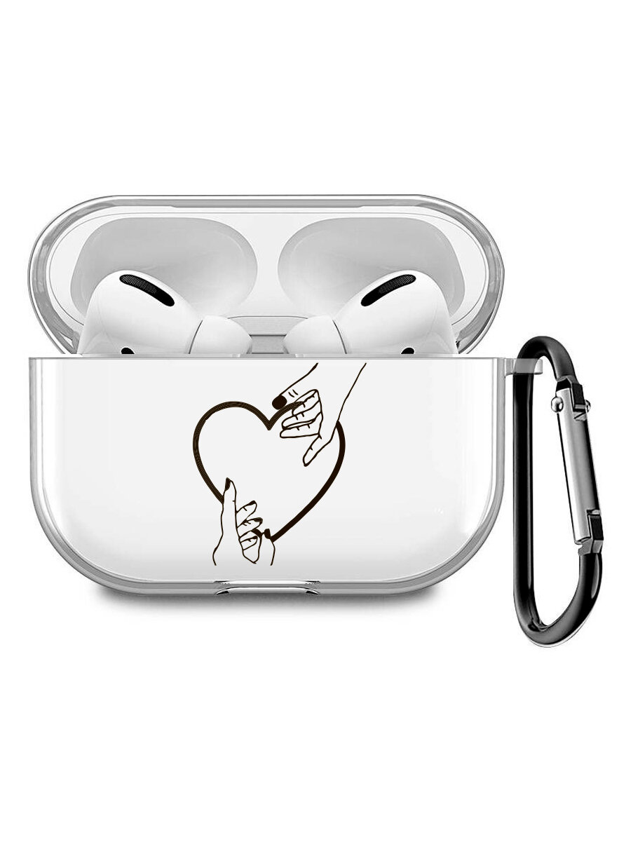 Прозрачный чехол для наушников Apple AirPods Pro / АирПодс Про силиконовый с 3D принтом "Lovers Hands"