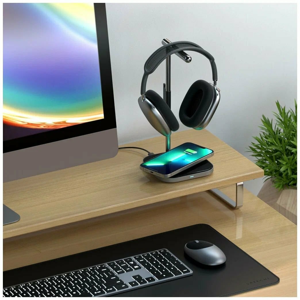 Подставка для наушников с беспроводной зарядкой Satechi 2 in 1 Headphone Stand with Wireless Charger Серая ST-UCHSMCM интересное:
