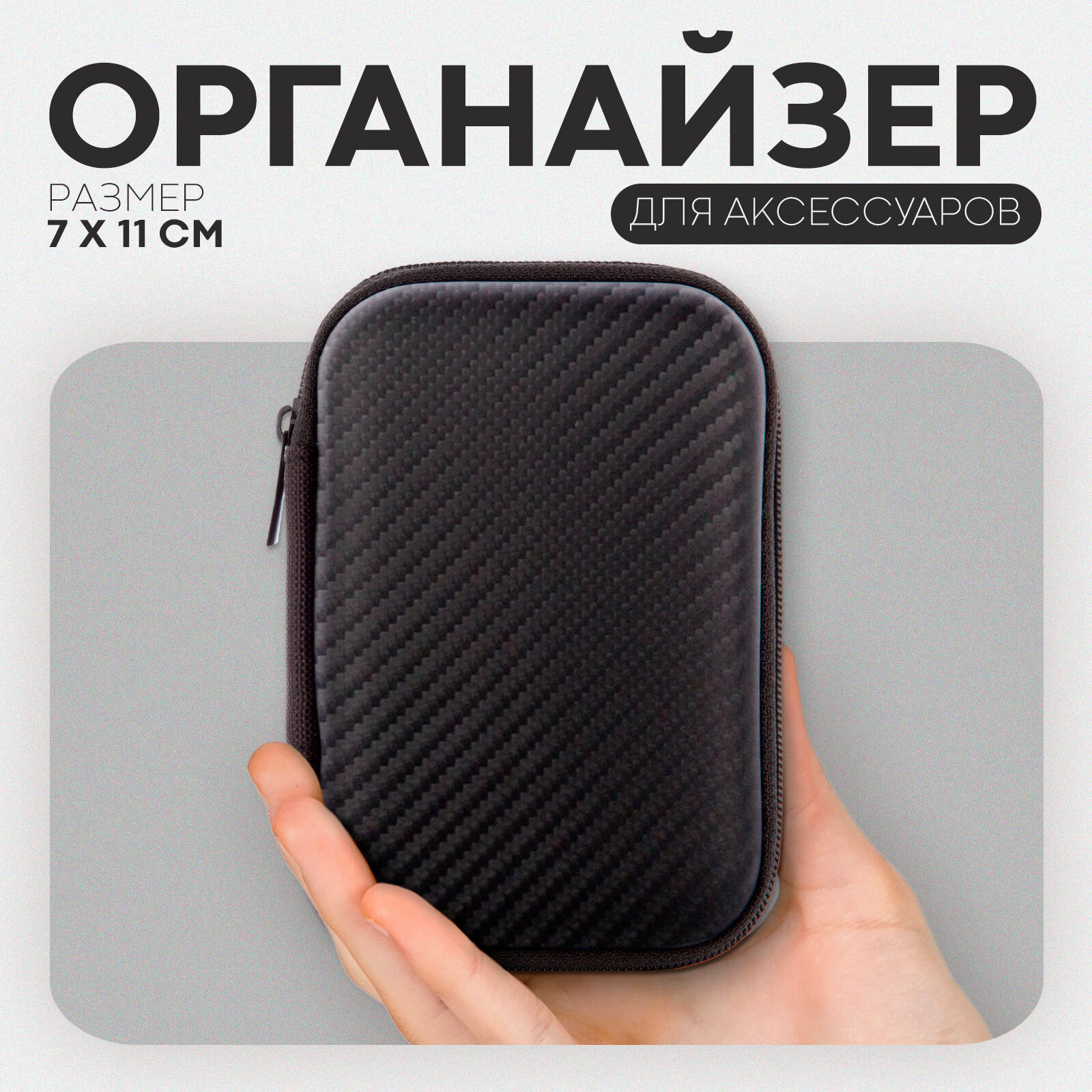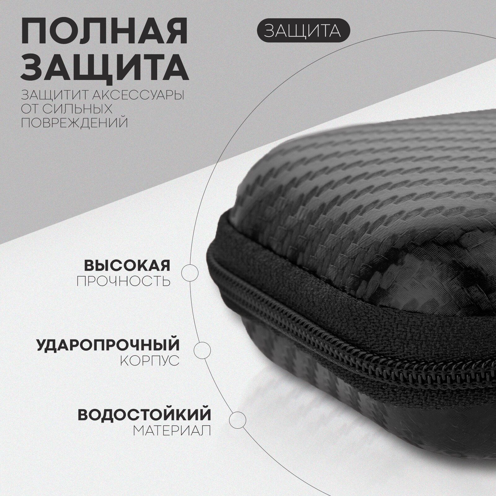 Купить Жесткий кейс органайзер сумка на молнии чехол для наушников, Картофан, с текстурой карбона, 7х11 см