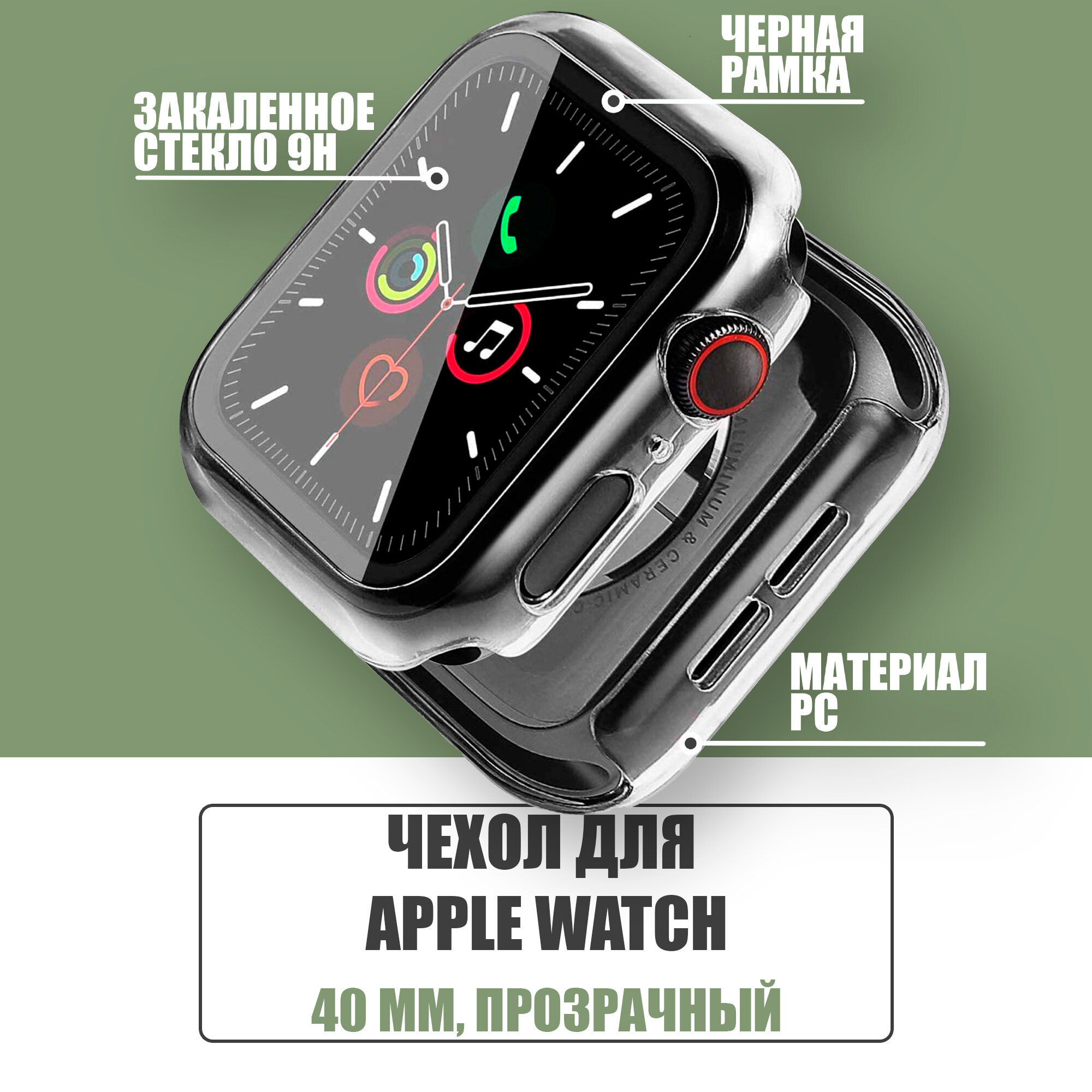 Защитный чехол стекло на часы Apple Watch 40 mm / Стекло на Апл Вотч 4, 5, 6, SE, Прозрачный интересное: