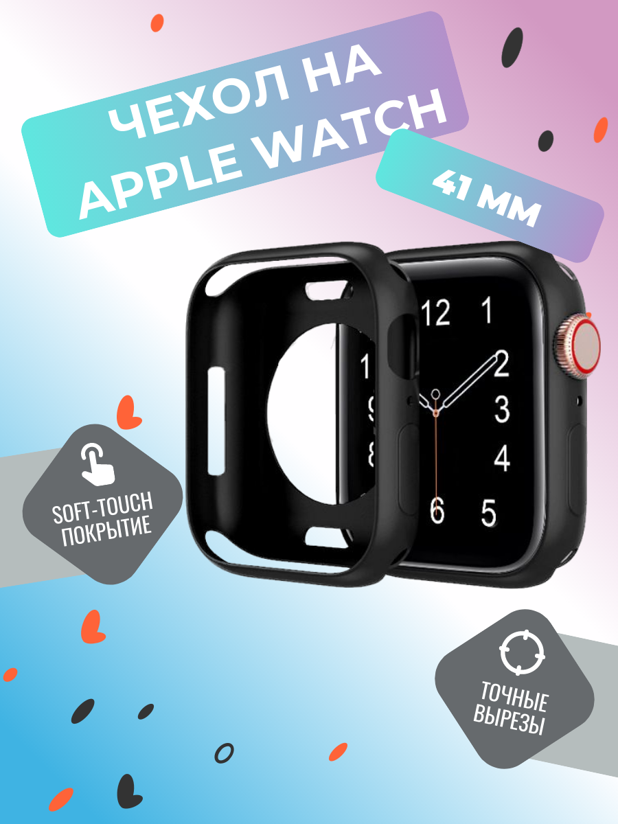 Защитный силиконовый кейс для Apple Watch 41мм, черный интересное: