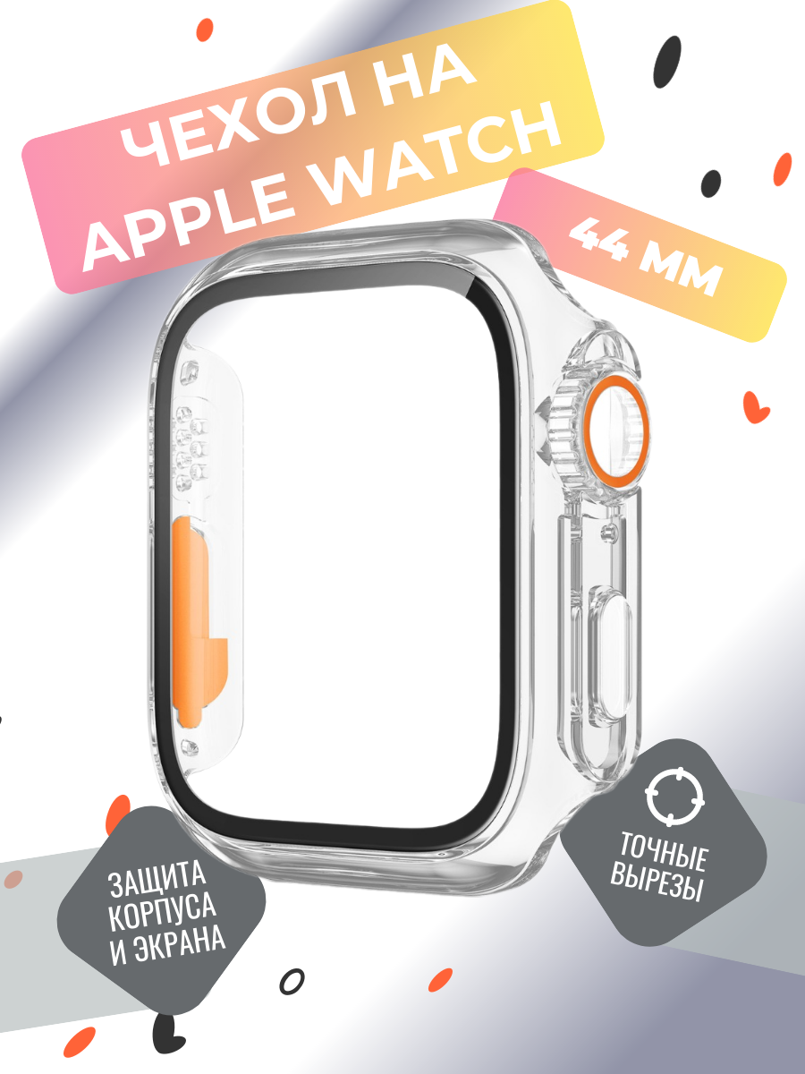 Защитный чехол на смарт-часы 44 mm серии 1-9, SE и SE 2, бампер на часы 44 мм с защитой дисплея, прозрачный интересное: