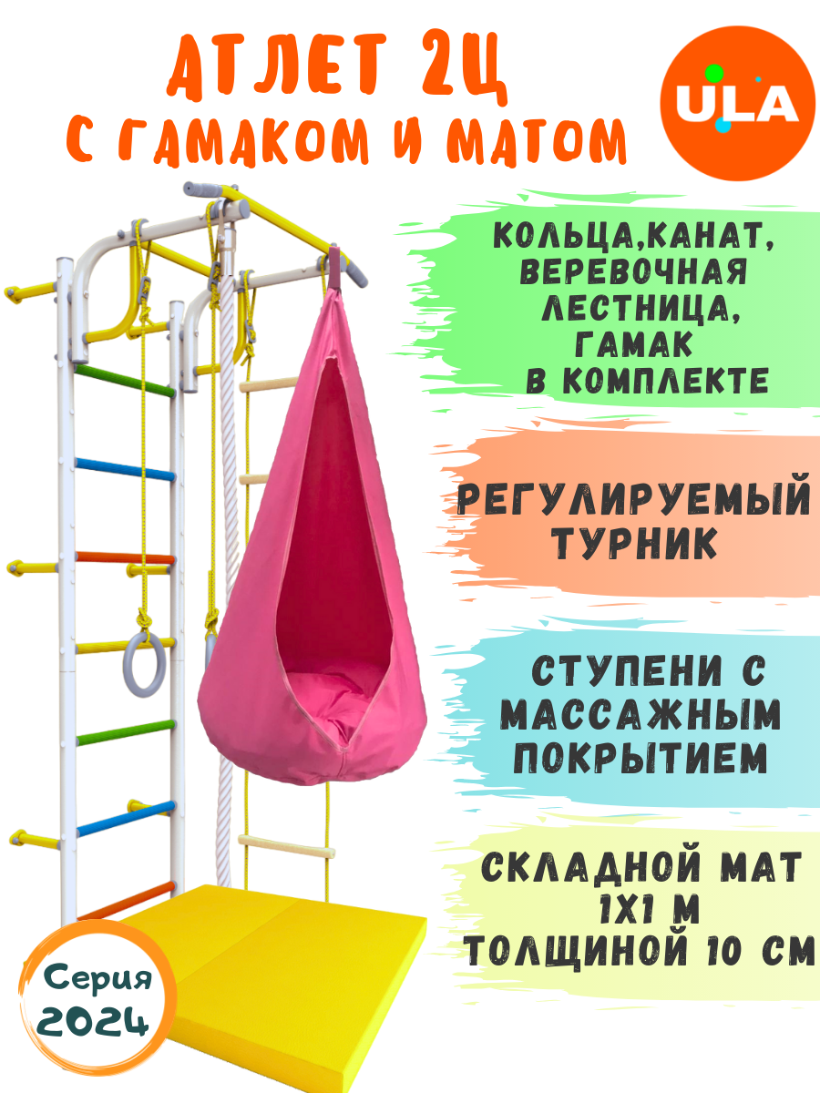 Ниже Вы можете прочитать отзывы на Атлет-2 ступени радуга с матом и гамаком, цвет розовый, ознакомится с подробными характеристиками, посмотреть интересные обзоры и фотографии на Атлет-2 ступени радуга с матом и гамаком, цвет розовый.