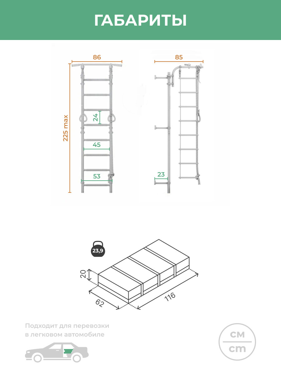 | Размеры шведской стенки (ШxВ) | 86x225 см |