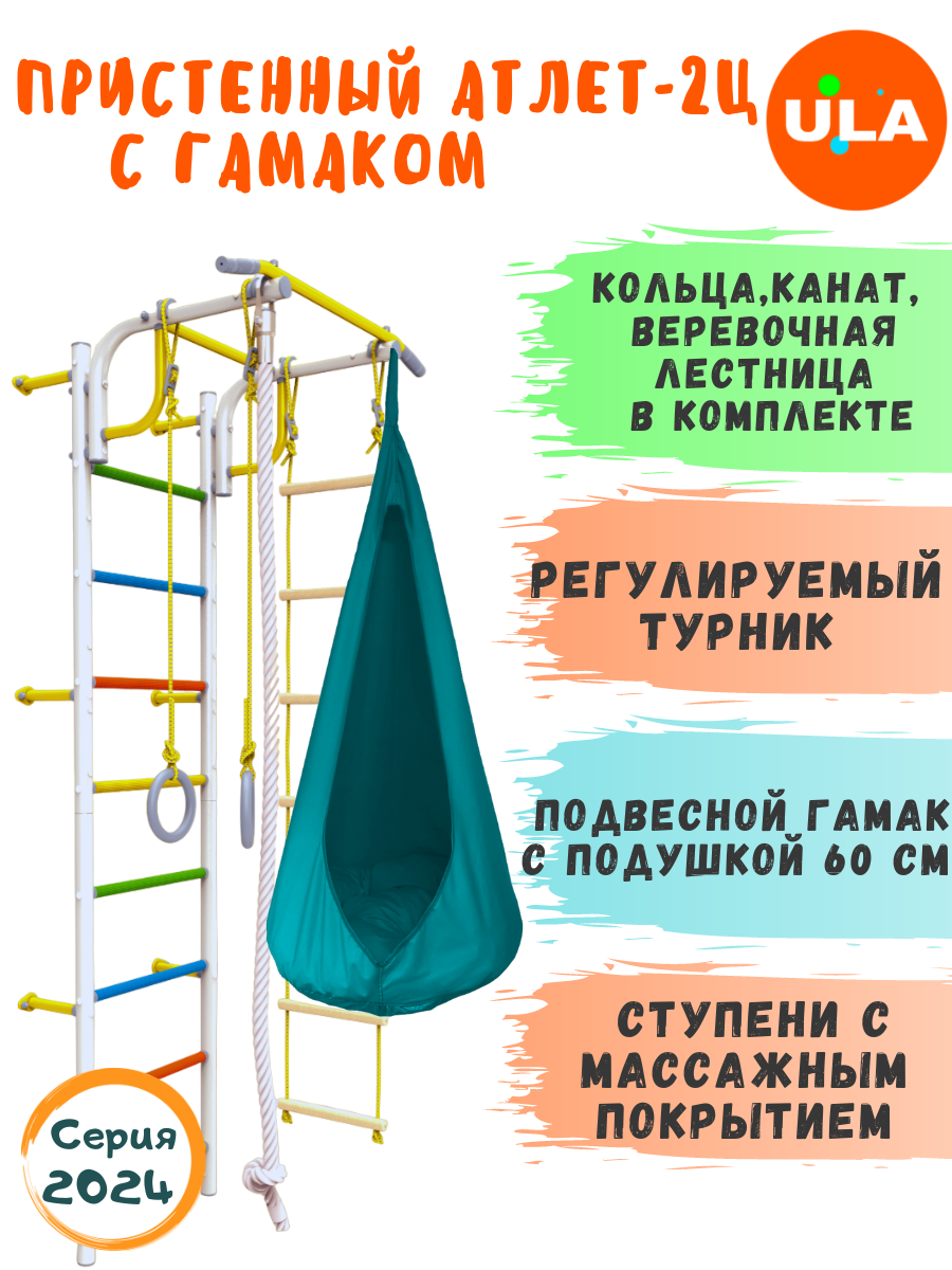 Шведская стенка Атлет-2 Rokids с гамаком, цвет радуга-бирюзовый