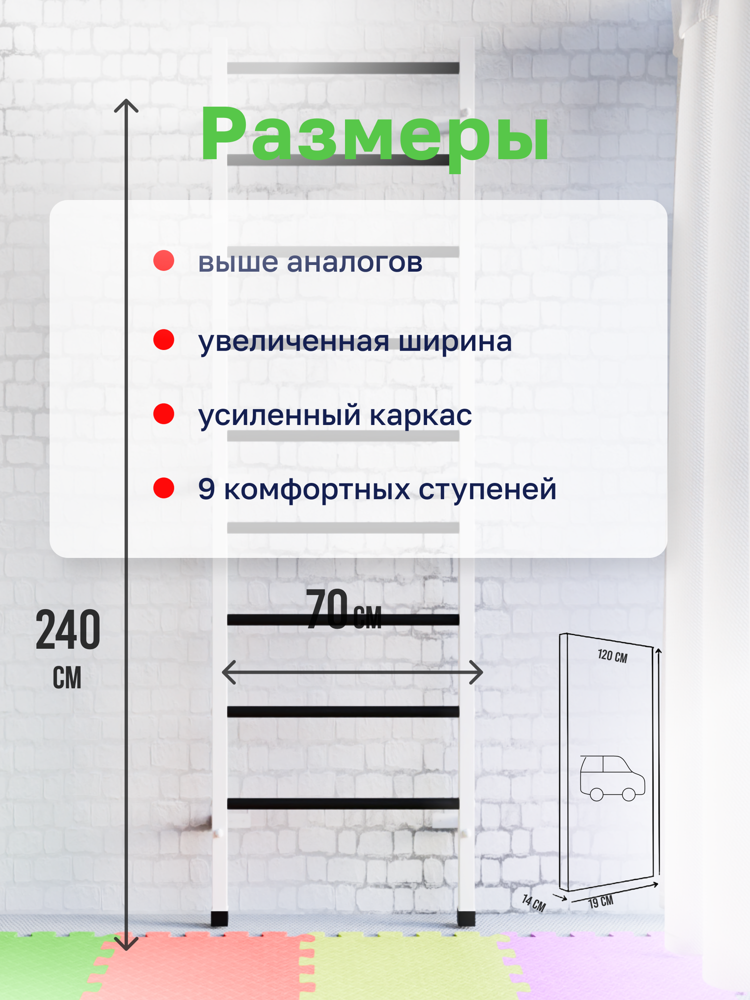 | Размеры шведской стенки (ШxГxВ) | 71x14x240 см |