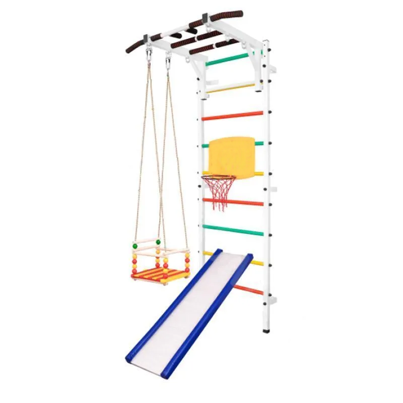 | Подробная комплектация | В комплект входит: Шведская стенка; Турник с рукоходом; Горка; Качели; Баскетбольное кольцо; Полный набор для крепления; Инструкция для сборки. |