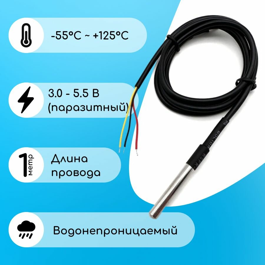 Ниже Вы можете прочитать отзывы на Датчик температуры DS18B20, герметичный IP67, кабель 1 метра, ознакомится с подробными характеристиками, посмотреть интересные обзоры и фотографии на Датчик температуры DS18B20, герметичный IP67, кабель 1 метра.