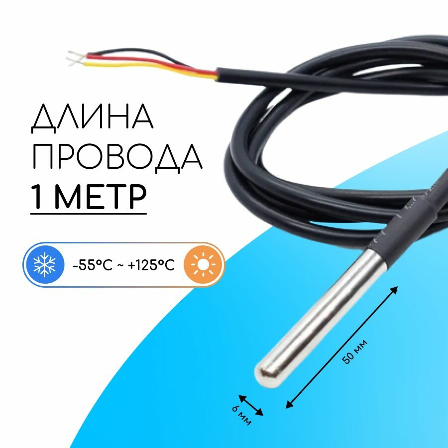 Купить Датчик температуры DS18B20, герметичный IP67, кабель 1 метра