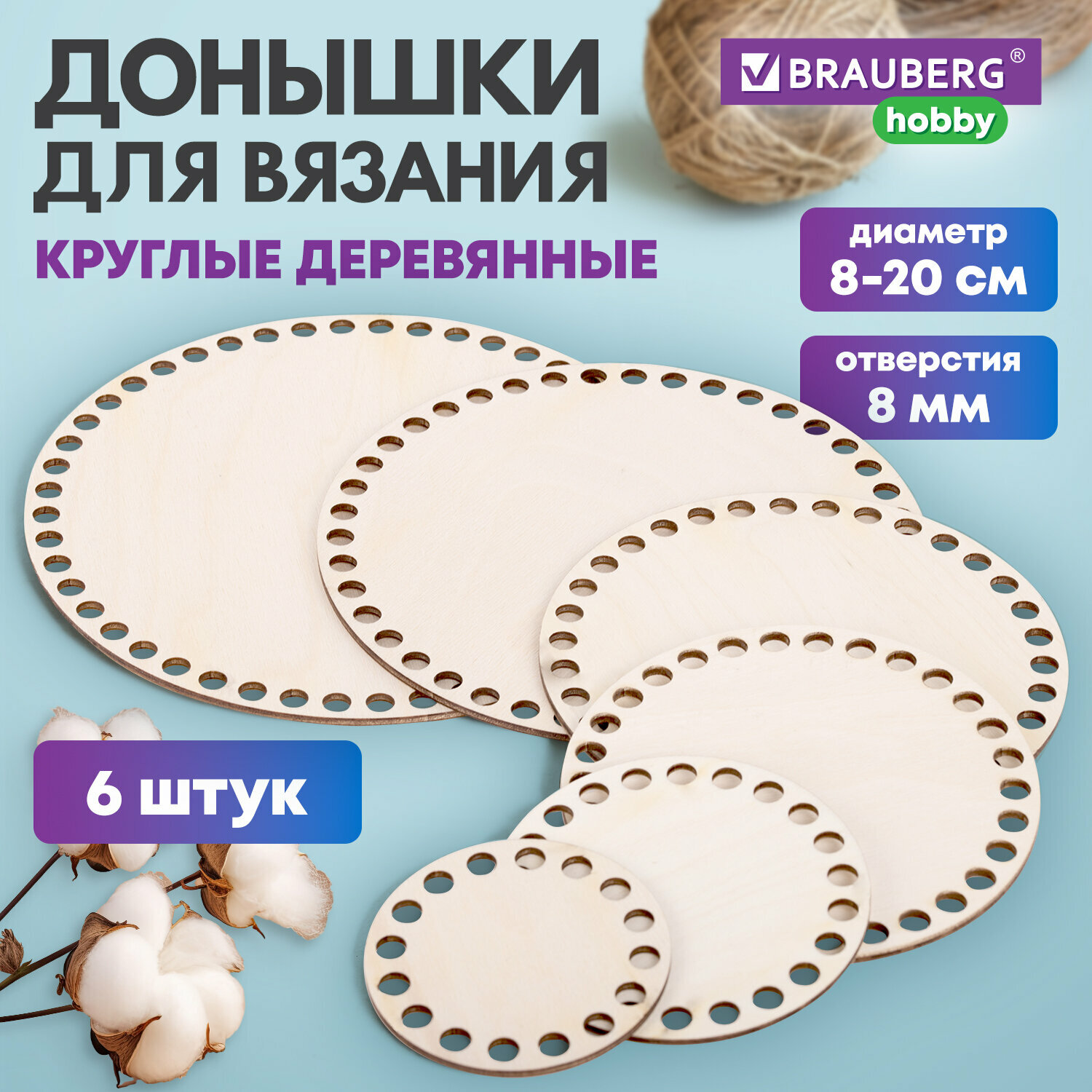СохранитьДонышко для вязания корзин и сумок, донышки деревянные для вязания круглые, 6 штук, диаметр 8-10-13-15-18-20 см, Brauberg Hobby, 665321 интересное: