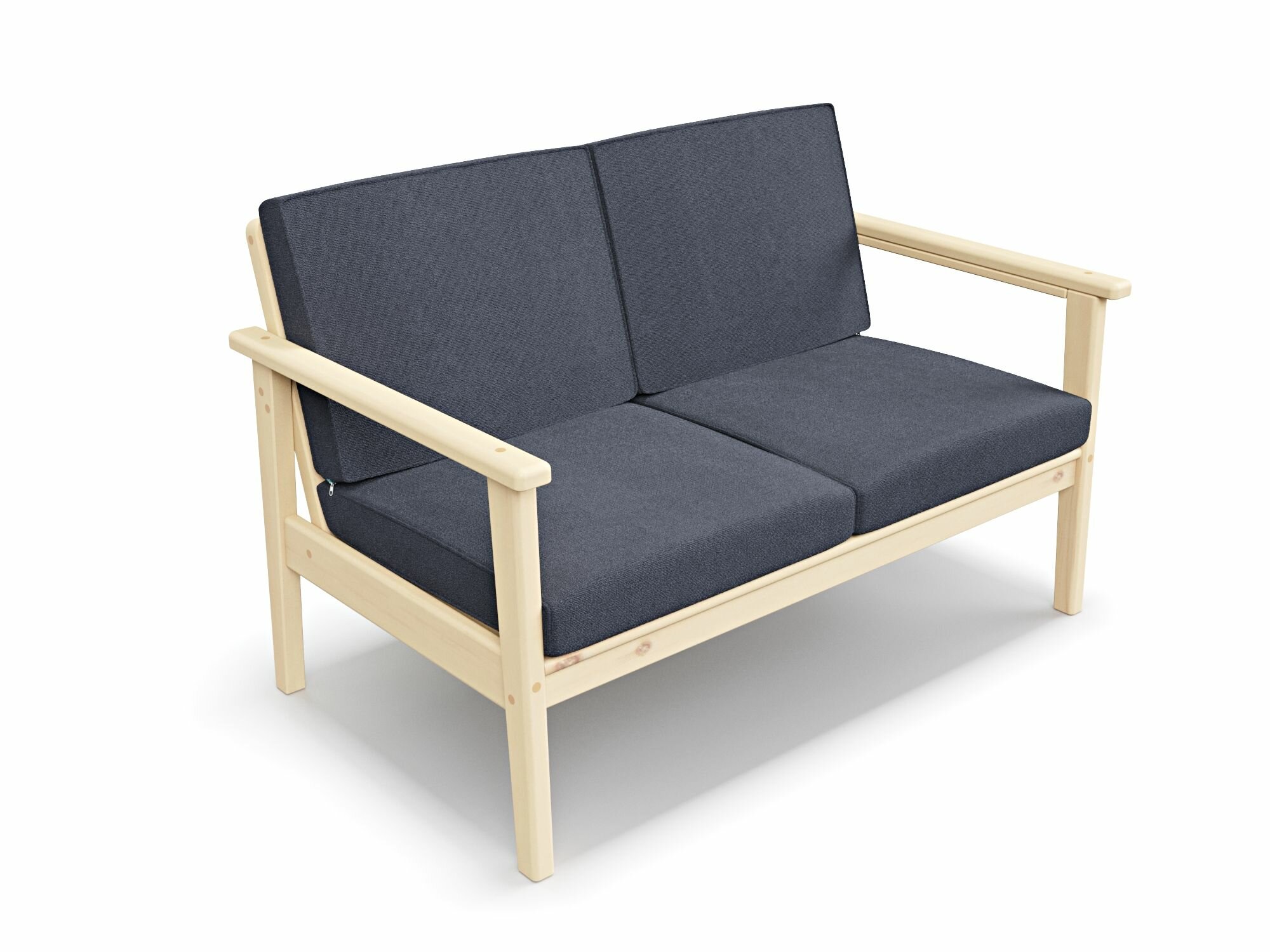Садовый диван ЛАРГО-М-С светло-коричневый, велюр, деревянный, на дачу, на веранду и террасу, для бани, кухонный, скандинавский лофт
