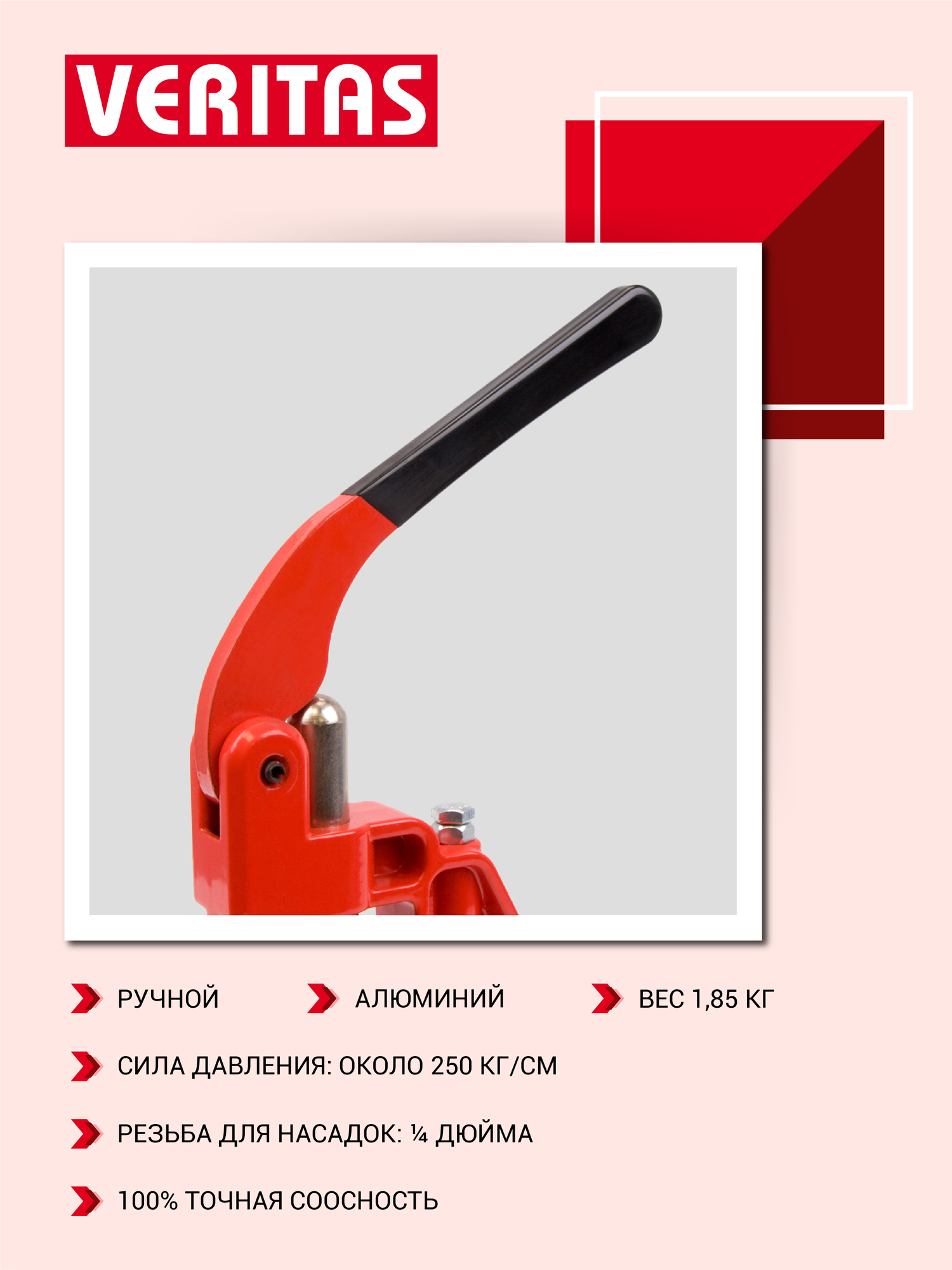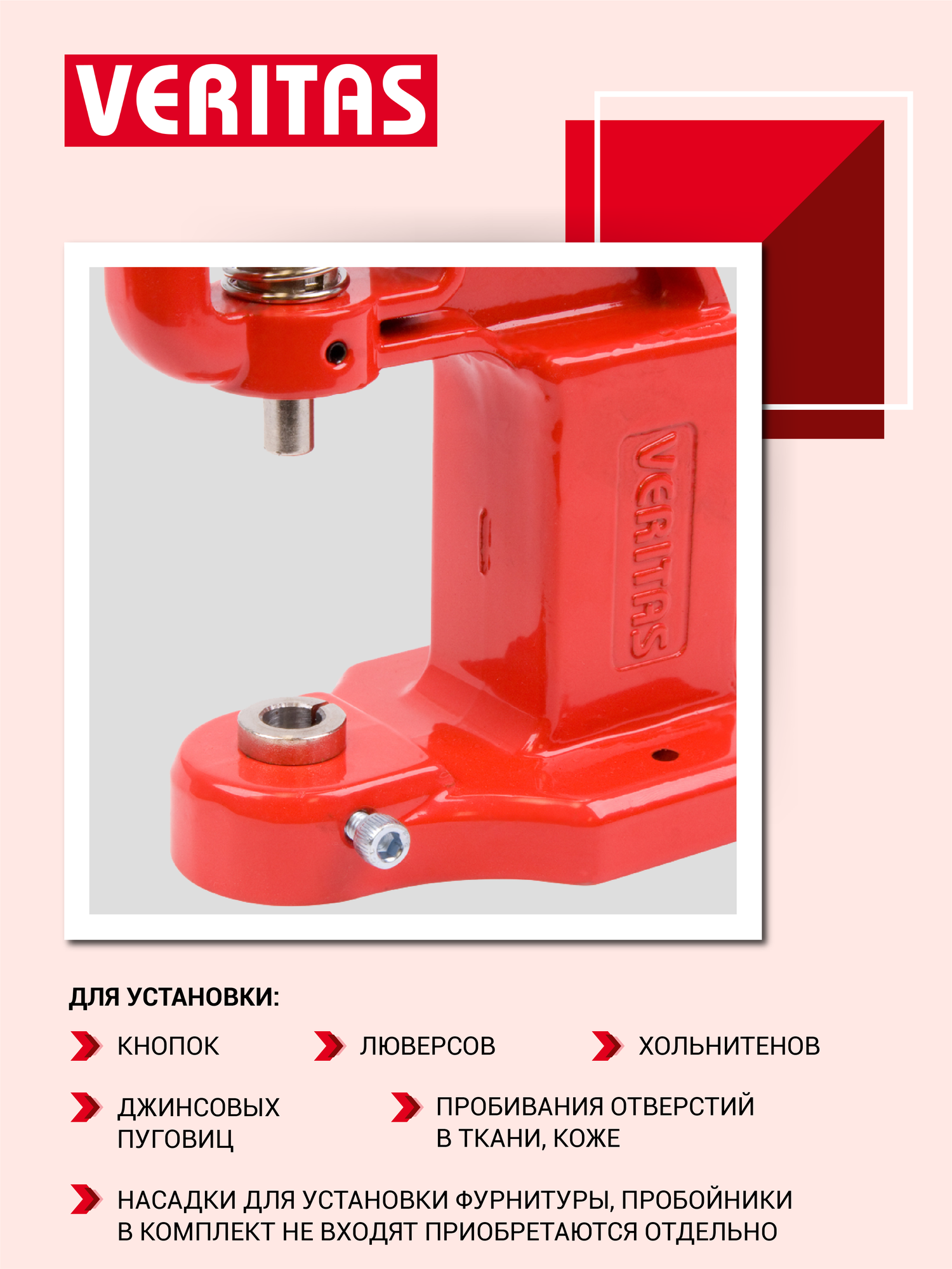 Купить Пресс ТЕР-2 механический универсальный VERITAS для установки швейной фурнитуры, цв красный, алюминий