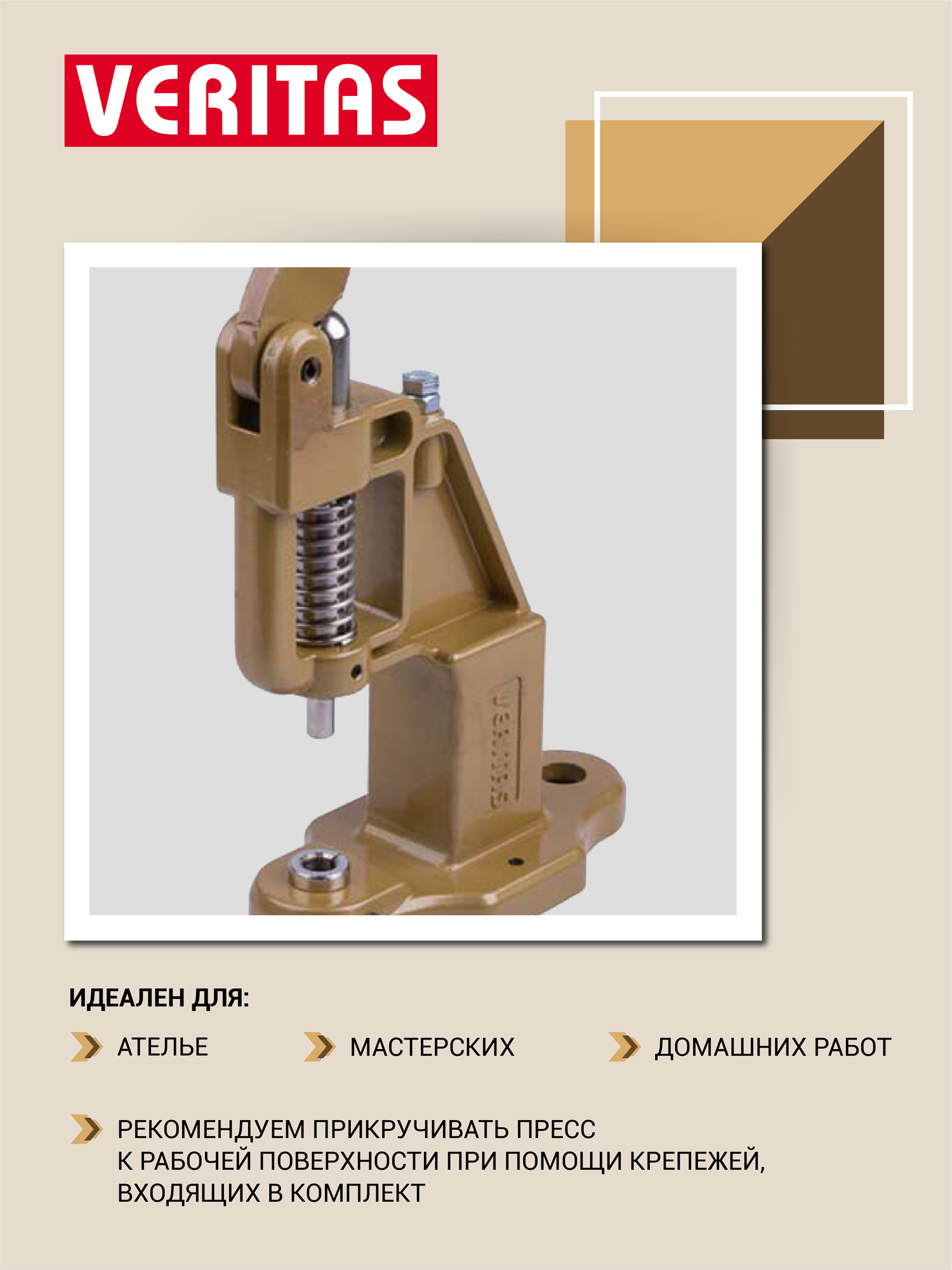 СохранитьПресс ТЕР-2 механический универсальный VERITAS для установки швейной фурнитуры, цв золотой, алюминий интересное: