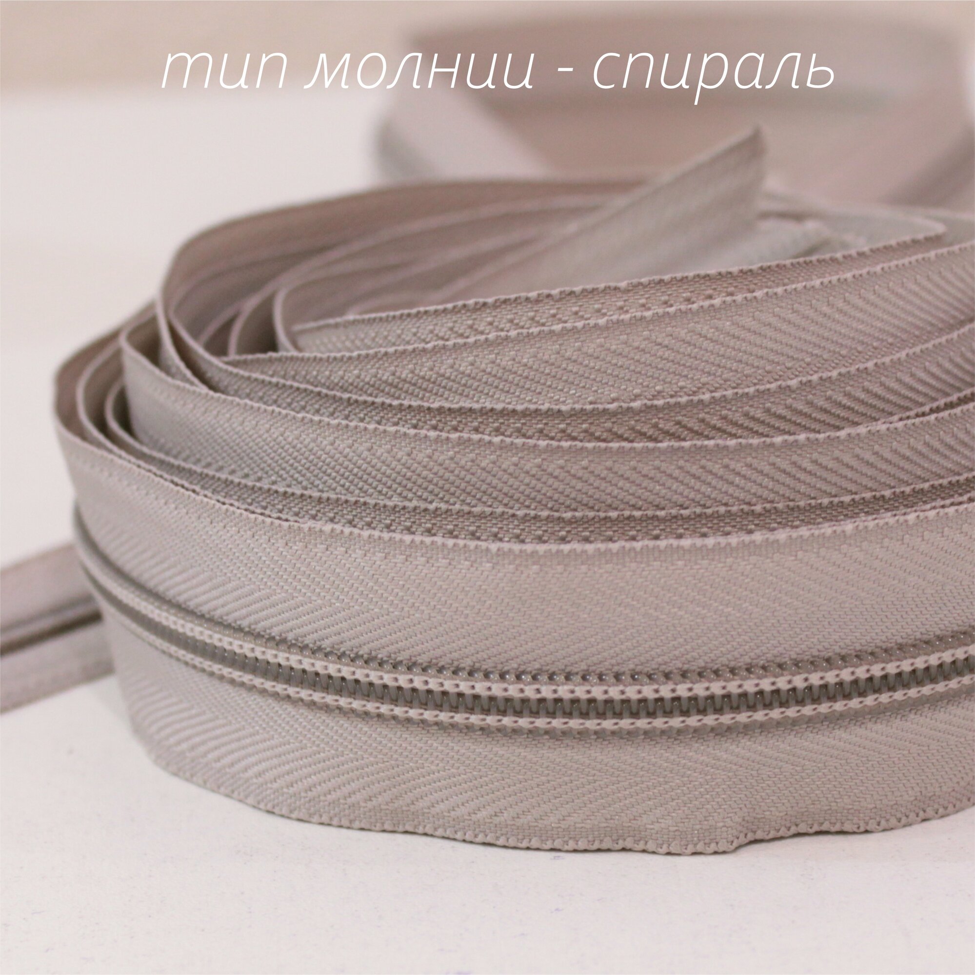 Молния рулонная 5 м. бегунки 10 шт. светло-серый цвет