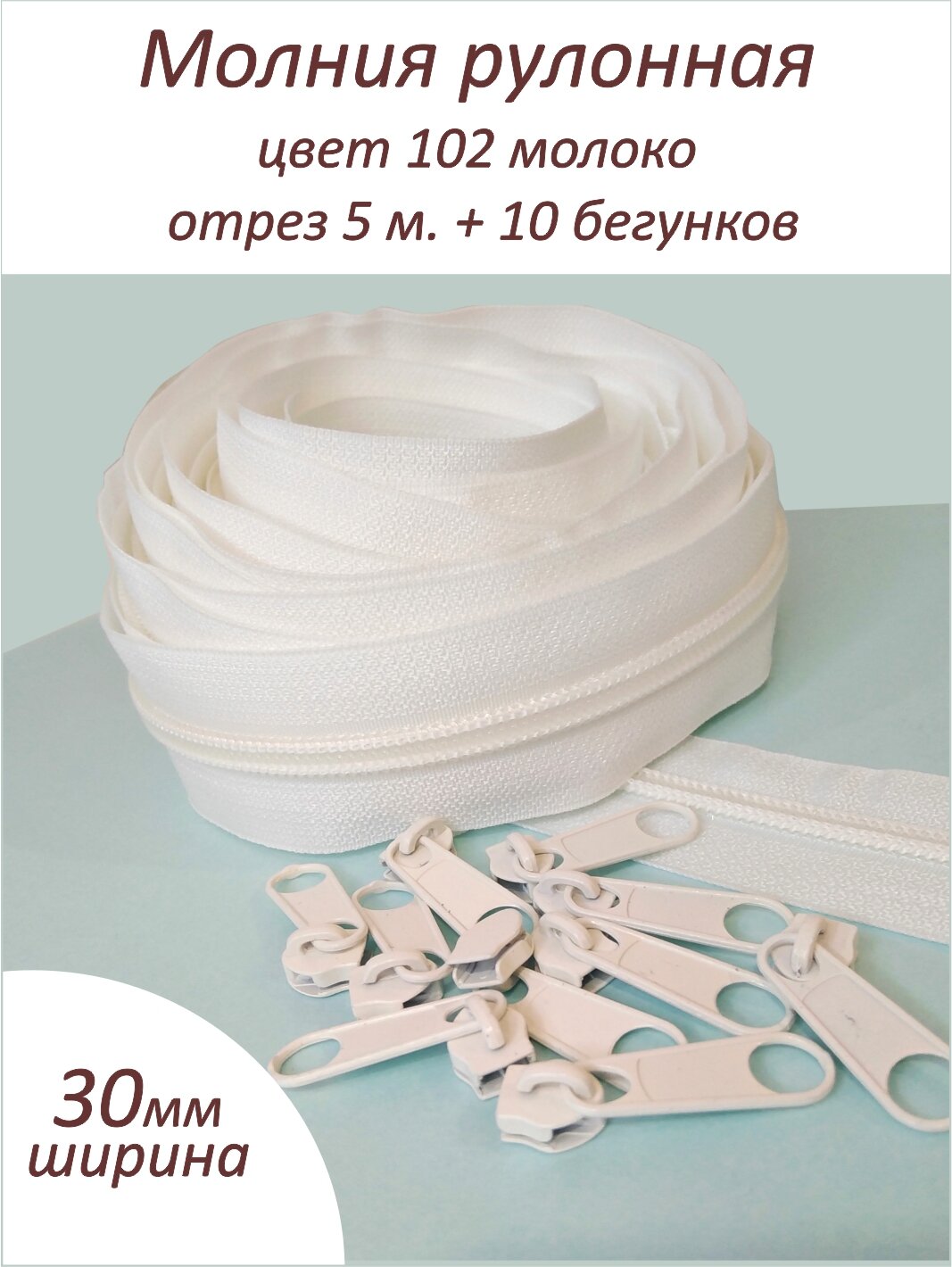 Рулонная витая молния тип 5 длина 5 метров + бегунок-слайдер в цвет 10 шт цвет Сливочный