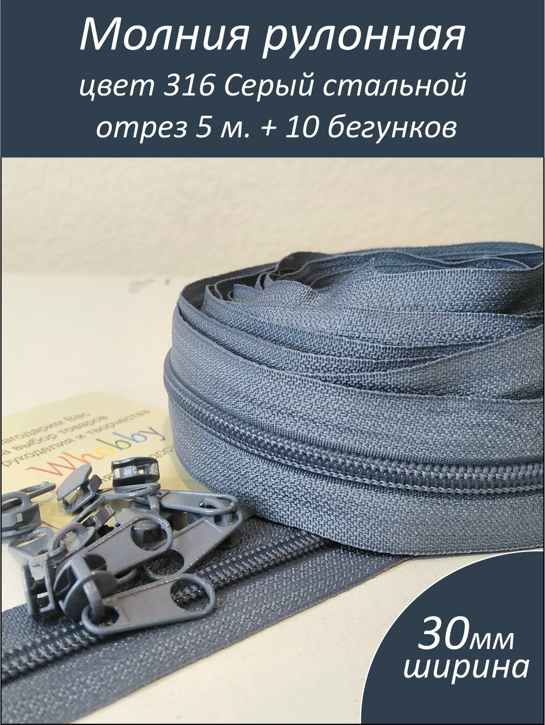 Купить Молния рулонная 5 м. бегунки 10 шт. цвет серый стальной