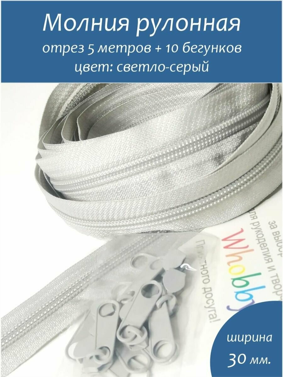 Купить Молния рулонная 5 м. бегунки 10 шт. светло-серый цвет