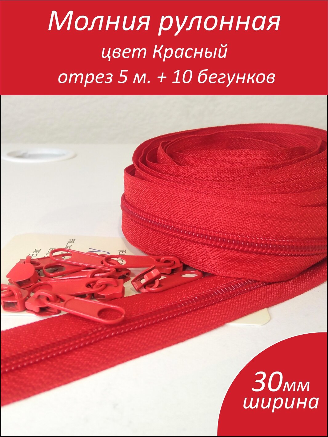 СохранитьРулонная витая молния тип 5 длина 5 метров + бегунок-слайдер в цвет 10 шт, красный интересное: