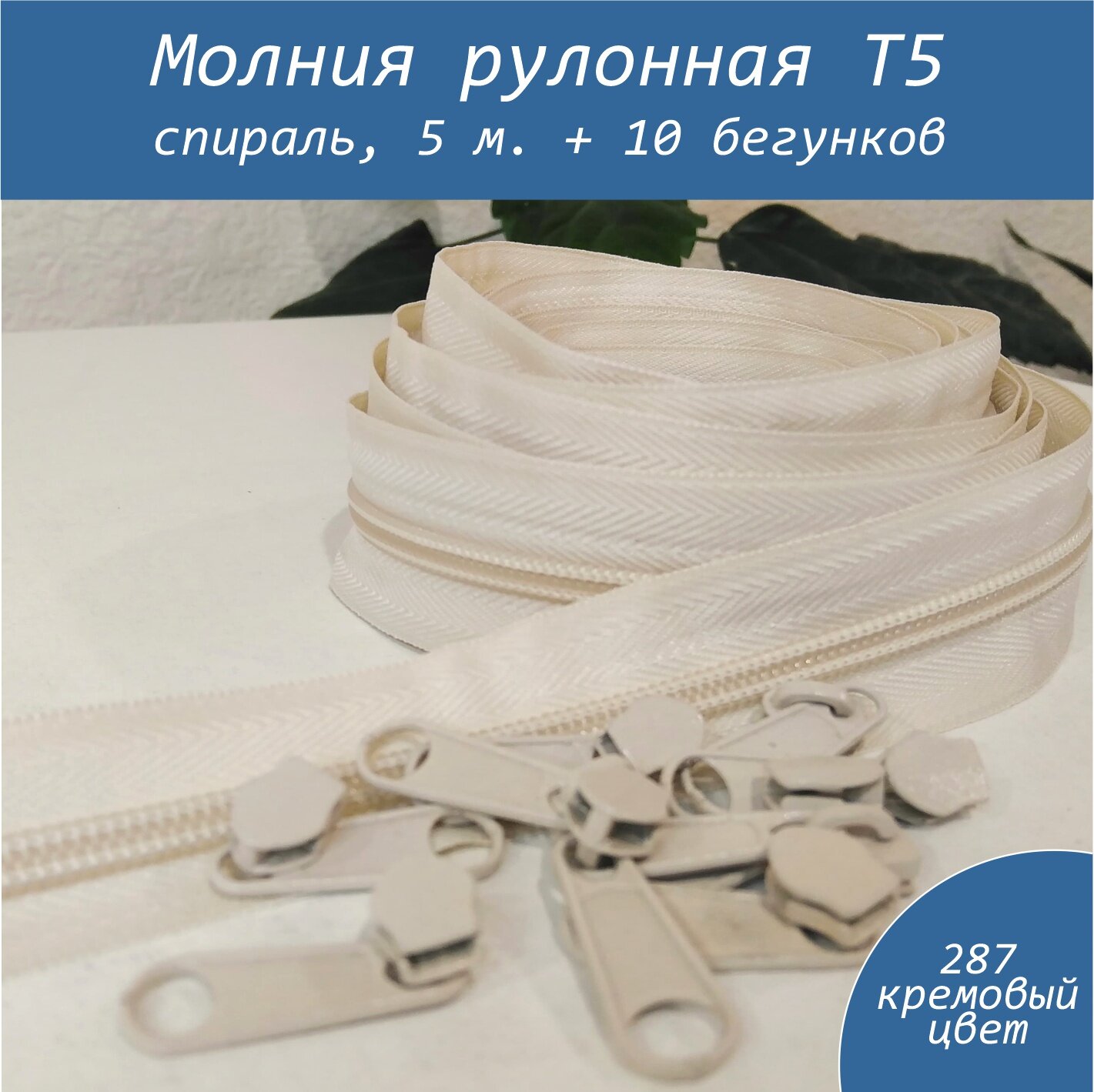 Купить Рулонная витая молния тип 5 длина 5 метров + бегунок-слайдер в цвет 10 шт цвет Сливочный