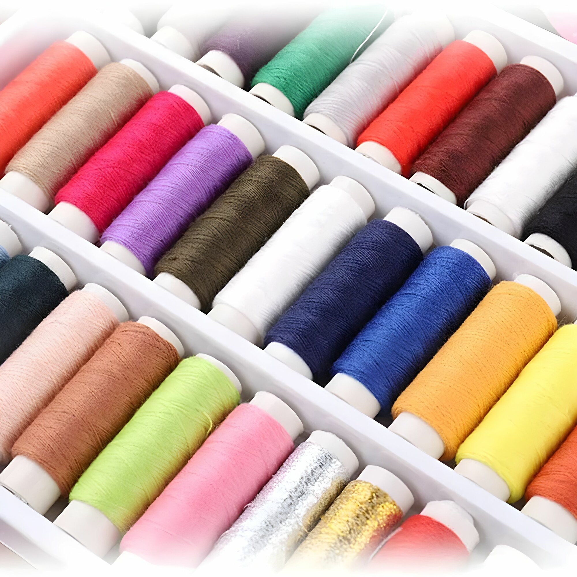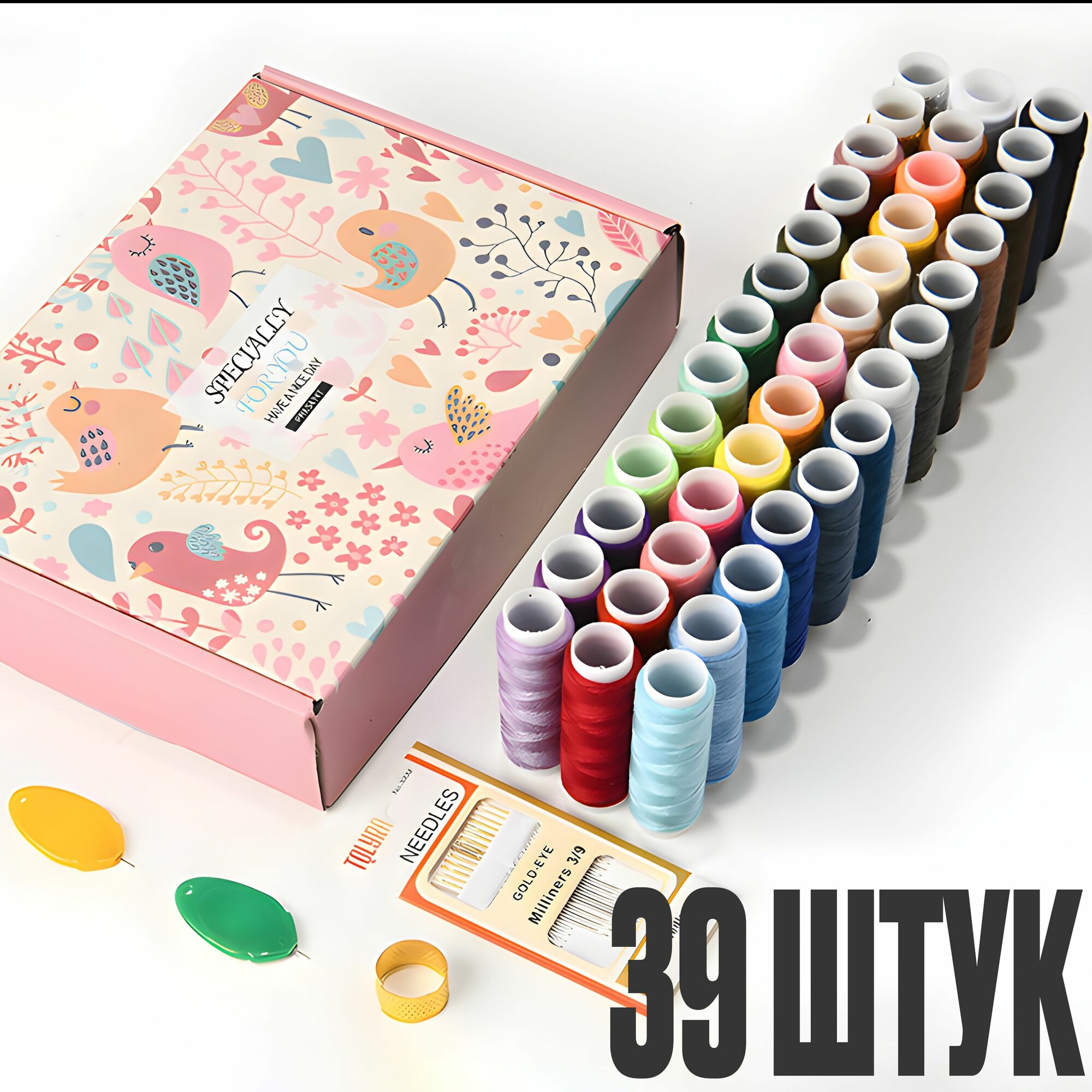 Купить Нитки для шитья для швейных машин 39 штук разноцветные + иголки нитковдеватели и наперсток