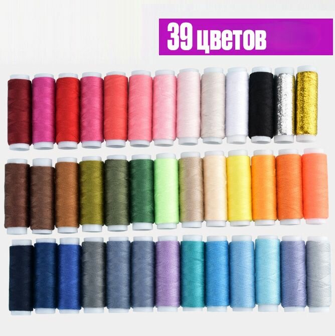 Нитки для шитья для швейных машин 39 штук разноцветные + иголки нитковдеватели и наперсток интересное: