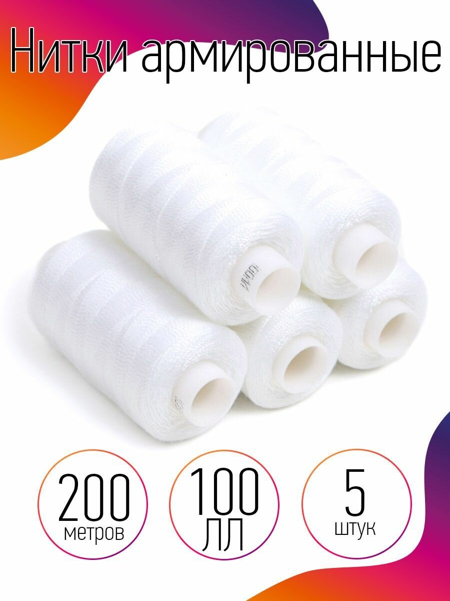 Нитки армированные 100ЛЛ 200 м цв.0101 белый уп.5шт интересное: