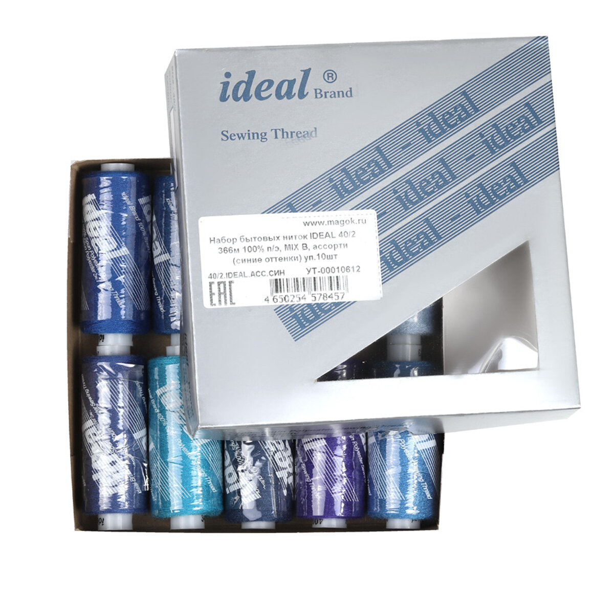 Купить Набор бытовых ниток IDEAL 40/2 366м 100% п/э, MIX B, ассорти (синие оттенки) уп.10шт