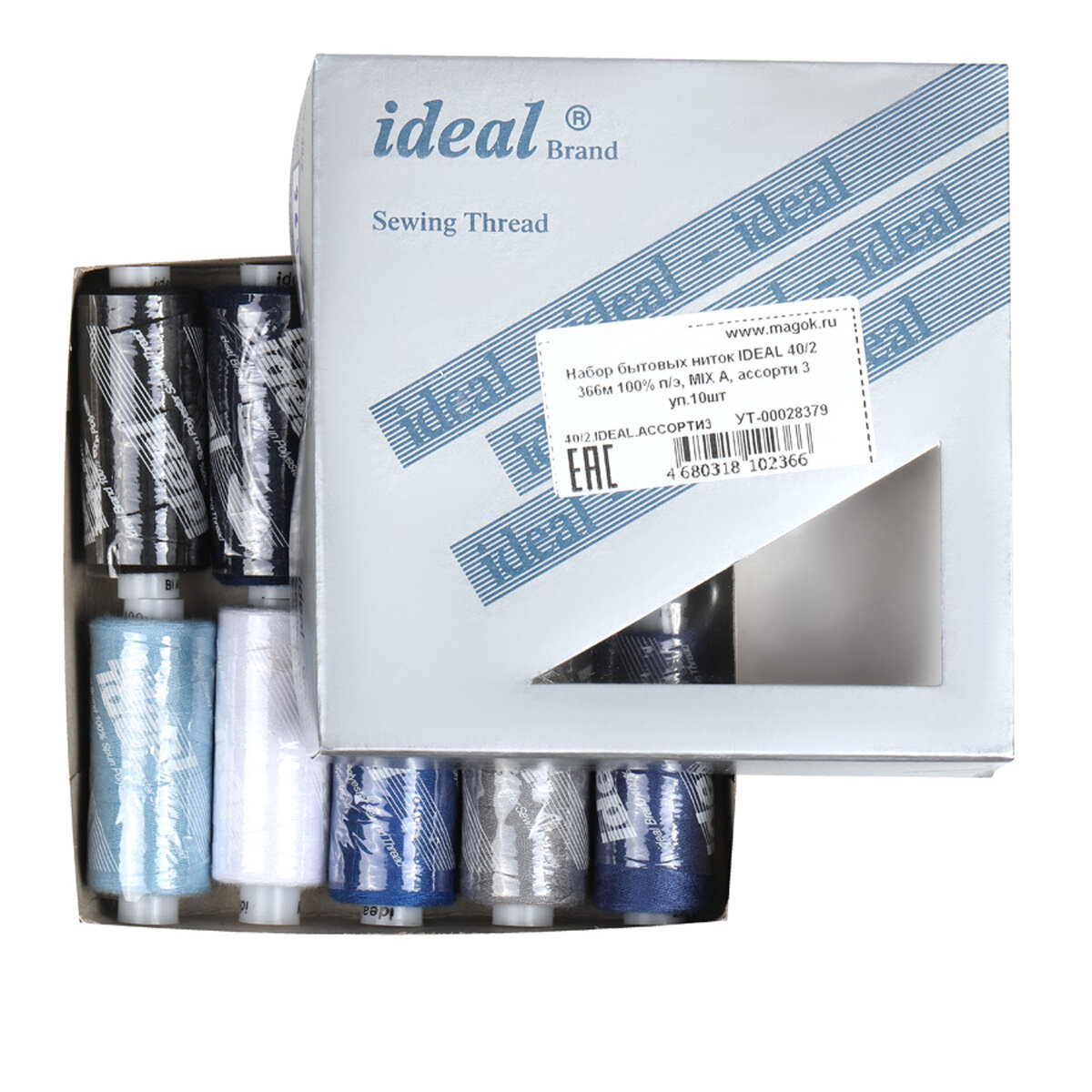 Набор бытовых ниток IDEAL 40/2 366м 100% п/э, MIX.1 уп.10шт