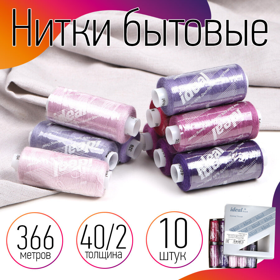 Купить Набор бытовых ниток IDEAL 40/2 366м 100% п/э, MIX L, ассорти (сиреневые оттенки) уп.10шт